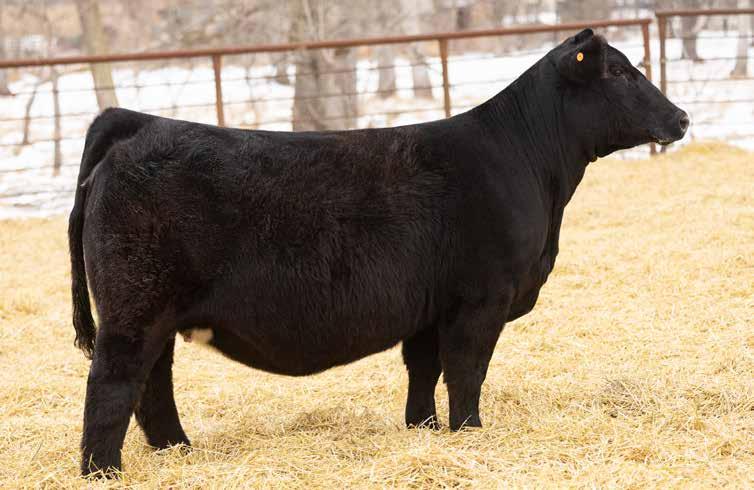 • This dark muzzled bull sure fits the quality mold of his sire with an immense amount of presence and added stoutness.