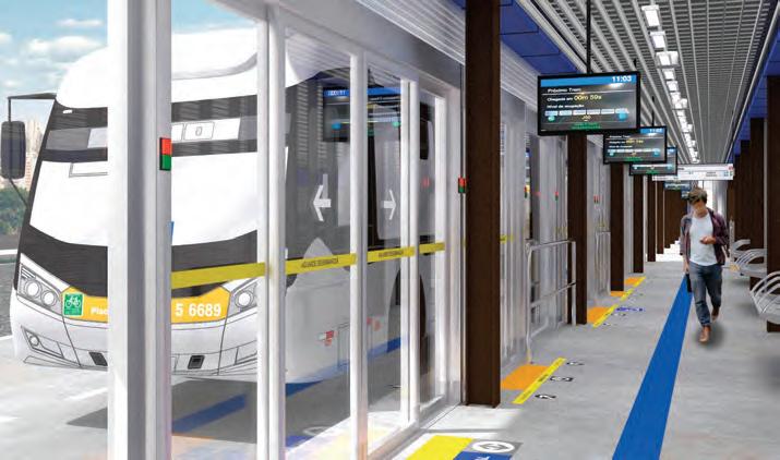 ções em tempo real aos usuários sobre horários e eventuais ocorrências, portas de plataforma automatizadas compatíveis com diferentes tipos de ônibus, além de sistemas de sonorização e avisos visuais.