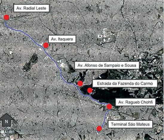 CPTM, a futura extensão da Linha 2–Verde do Metrô, a Linha 15–Prata do Monotrilho, além dos corredores de ônibus Radial Leste e Itaquera. Serão implantadas 46 estações de embarque e desembarque (23 em cada sentido), com espaçamento médio de 600 metros. As estações serão fechadas, possibilitando a cobrança de tarifa fora do ônibus, e contarão com portas automáticas, banheiros, sistema de combate a incêndio, rotas de fuga e acesso à internet via Wi-Fi. As plataformas terão acessibilidade plena, com piso tátil, rampas e embarque em nível, além da implantação de Salas de Apoio Operacional em cada estação.