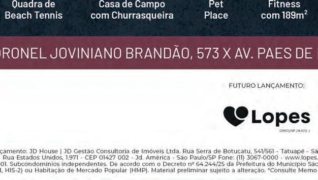 Ambiente; Administração Pública e de Finanças e Orçamento, o processo nunca saiu do papel. PATRIMÔNI E MEMÓRIA Na próxima quinta-feira, dia 12, a Unicid - Universidade Cidade de São Paulo – realiza a apresentação dos projetos de extensão dos alunos da universidade, com o lançamento do primeiro ebook “Tatuapé – Patrimônio e Memória”, que apresentará um levantamento completo do patrimônio do bairro e a exposição da pesquisa de preservação de histórias de vida e identidade da comunidade. Durante o evento também será apresentado um novo conceito da Praça Sílvio Romero.