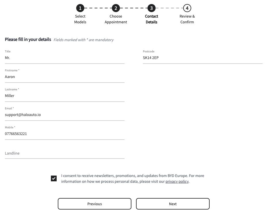 Customers will book their test drives and make enquiries on https://bydeurostestdrive.co.uk/