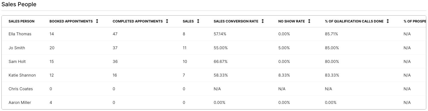 This is a league table as to how each individual sales exec is performing, this is tracked by managers and individual salespeople.