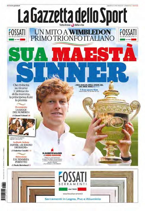 Uno di quei giorni che cambiano la storia. Il Centre Court di Wimbledon spalanca le porte alla gloria del tennis italiano e consegna all’eternità il nome di Jannik Sinner. Battendo in finale Carlos Alcaraz in quattro set, l’altoatesino diventa il primo italiano a laurearsi campione nello Slam più prestigioso. Una data che resterà impressa nella memoria, sui libri di storia sportiva: 13 luglio 2025, il giorno in cui il giardino dei Re si tinge di azzurro. Un giorno che, per Sinner, sembrava non sarebbe arrivato. Per tutto quello che era successo prima: il titolo in Australia e poi tre mesi fuori per l’accordo con la Wada. Il rientro a Roma, con la finale persa da Alcaraz e poi la batosta di Parigi e del Roland Garros, scivolato dalle mani dopo aver avuto tre match point, ancora contro Carlos. Sempre lui, sempre loro. Uniti dal filo che unisce le leggende.