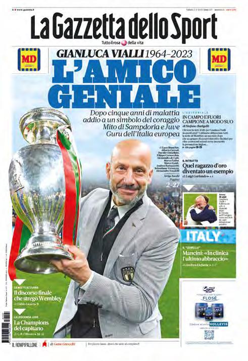 Pur concepita in un giorno di enorme tristezza, o forse proprio per questo, la “prima” della Gazzetta dedicata al congedo di Gianluca Vialli è veramente bella. Bella la foto perché in quel sorriso c’è tutta la sua naturale empatia; bello il gesto perché porgere la coppa dell’Europeo ai tifosi – vinta dai cari figliocci col suo prezioso contributo morale – è l’essenza di ciò per cui lui si batteva; bellissimo il titolo perché la citazione da Elena Ferrante restituisce sì la genialità di Luca, la capacità di pensare fuori dagli schemi che lo faceva viaggiare sempre in anticipo sui tempi, ma soprattutto la profondità del suo senso dell’amicizia. C’è stato un tempo, sconosciuto alle liturgie bloccate del calcio contemporaneo, nel quale campioni e cronisti viaggiavano assieme, i loro rapporti non erano filtrati dagli agenti ma diretti, ci si prendeva qualche solenne tirata d’orecchie per una critica troppo spinta ma in genere si finiva per riderne assieme, sempre che il feeling umano fosse buono, e va da sé che non poteva esserlo con tutti. È una premessa che occorre fare non per nostalgia – quella semmai è un fatto privato – ma per spiegare perché sappiamo tante cose, alcune fino a commuoverci, dei vecchi eroi, a fronte del nulla che conosciamo dei gladiatori moderni, e al di là della melassa dedicata al vincitore è difficile capire se si sta raccontando un santo o un malandrino. Con Luca non ho mai corso questo pericolo perché, una volta costruita una confidenza, la narrativa del-