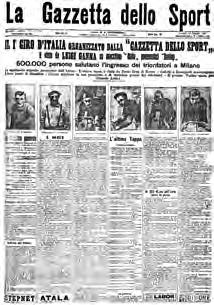 a Gazzetta anche agli inizi della sua storia non è mai stata solo un giornale, ma spesso ha accompagnato lo sport italiano nella sua evoluzione diventando punto di riferimento anche come organizzatore di eventi e menifestazioni. In un’Italia che, a cavallo fra 800 e 900, conta 34 milioni di abitanti di cui solo in 10 mila si dedicano allo sport, sembra un azzardo, ma così non sarà. Dopo scherma, gare di auto e moto, la Rosea punta soprattutto sul ciclismo. E comincia ad organizzare corse: la prima edizione del Giro di Lombardia è del 1905, la Milano-Sanremo vede il debutto due anni dopo. Poi arriva l’idea di un grande progetto: una corsa a tappe che coinvolga tutto il Paese. Un progetto anche rischioso, visto che le nostre strade dei tempi erano a dir poco avventurose e spesso i collegamenti quasi inesistenti. Ma tant’è, dopo l’idea arriva la realizzazione, accelerata anche dal fatto di voler battere la concorrenza del Corriere della Sera che voleva fare la stessa cosa dopo aver riscontrato il successo del Giro Automobilistico d’Italia, nato nel 1901. Così la corsa rosa viene annunciata un anno prima. Il primo Giro, otto tappe, vede il via da piazzale Loreto a Milano con un gruppo di 127 ciclisti, fra cui le stelle dell’epoca Gerbi, Rossignoli, Ganna, Galetti, Pavesi e Cuniolo. La classifica finale, stilata a punti (e non a tempi come oggi) sulla base dei piazzamenti, premiò Ganna, ma soprattutto quell’invenzione della Gazzetta che sarebbe diventata un simbolo del ciclismo mondiale.