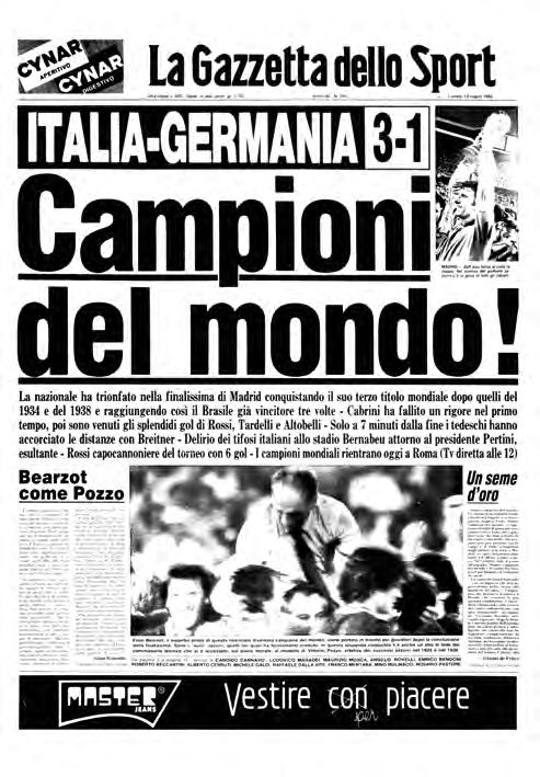 hanno lavorato negli anni e di direttori che si sono succeduti alla guida. Ci sono molti aggettivi che messi insieme danno l’idea di cosa è stata ed è oggi la Rosea: attendibile, autorevole, affidabile, credibile, interessante, utile, divertente ed emozionante. Sì, emozioni come quelle provate davanti a prime pagine iconiche quali il “Tutto vero!” che nel 2006 ha celebrato la vittoria ai Mondiali di Germania e il “Campioni del mondo!” del 1982 con il trionfo degli azzurri di Bearzot. E allo stesso tempo affidabile perché oltre ad esaltare le grandi imprese sportive è una sentinella inflessibile, capace di denunciare tutte le distorsioni e gli scandali che ha incontrato durante la sua storia.