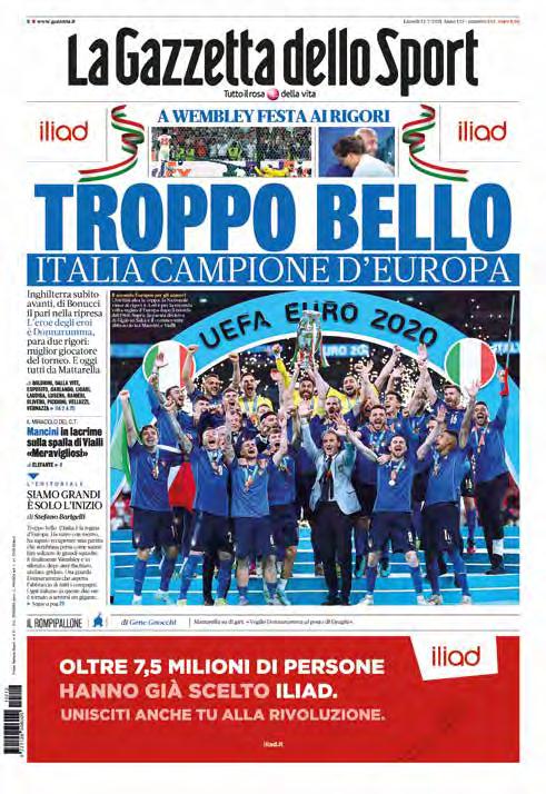 te nuovo. La grande Premier League di oggi nacque esattamente in quegli anni. E poi le ore passate assieme in trasmissione a Sky, il desiderio perfettamente realizzato di farsi divulgatore calcistico, la scoperta della malattia e la decisione di gestirla apertamente, provando a ispirare le persone nella cattiva sorte come gli era sempre riuscito nella buona. E riuscendoci, fino allo scritto di Roosevelt sull’uomo nell’arena che nessuno degli azzurri di Wembley – che rivincita storica per lui –dimenticherà mai. Il sostegno psicologico a ciascuno dei campioni d’Europa e la tenera incapacità di assistere ai rigori finali, con quelle immagini bellissime di lui che volge le spalle al campo ed esulta o si dispera a seconda delle reazioni del pubblico. E quando Donnarumma para l’ultimo pallone di Saka – e nei giorni difficili seguiti al Covid questo titolo insperato ci dà l’abbrivio per ripartire – ecco l’abbraccio a Roberto Mancini che resterà indelebile nelle nostre vite, le lacrime che impastano il campo di battaglia, il privilegio dell’amicizia finché il tempo te lo concede, il lascito del nostro amico geniale.
