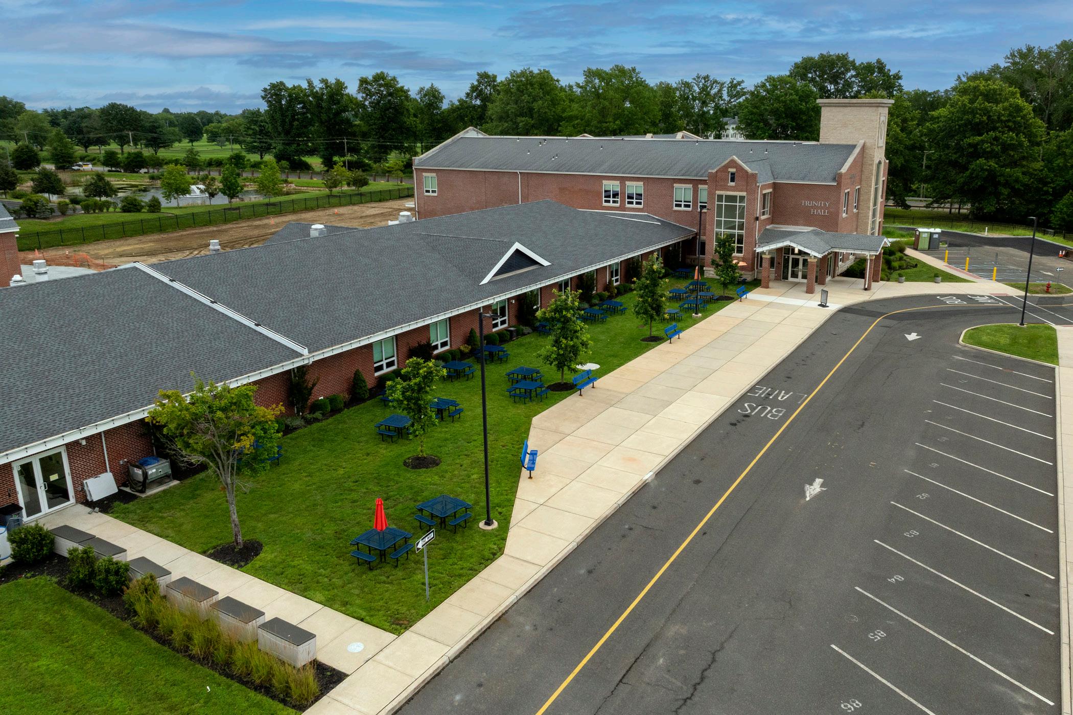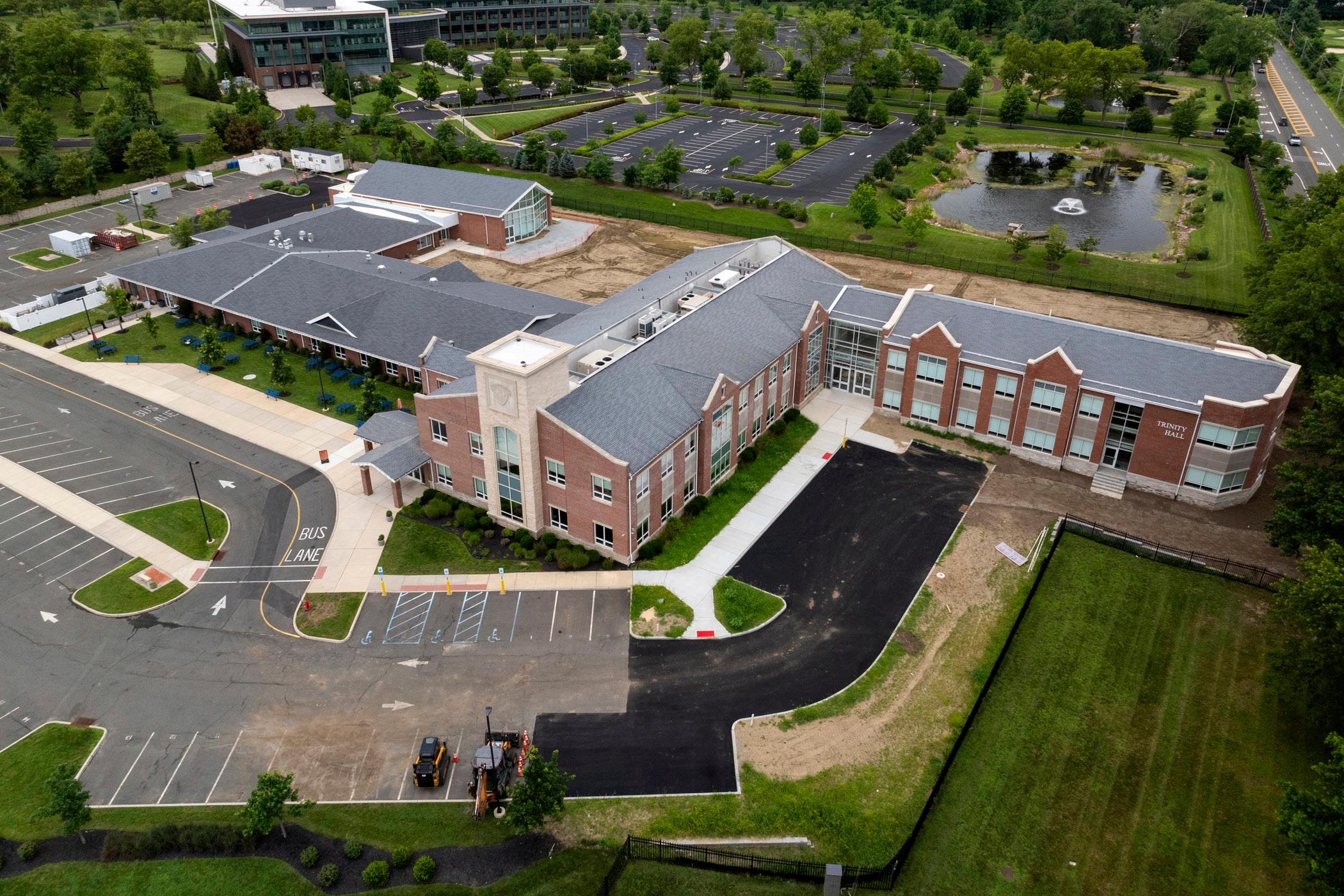 At the outset of the projects, extensive sitework and utility installations were required to prepare the former golf course for redevelopment. This included designing and installing a campus-wide underground electrical system strategically routed to avoid interference with the golf course greens. The LF Driscoll/Perryman team worked closely with PECO, civil engineers, and the design team to precisely map manholes, transformer vaults, and modules. Using drone technology, the team surveyed elevation changes and existing utilities to ensure accuracy and efficiency during installation.