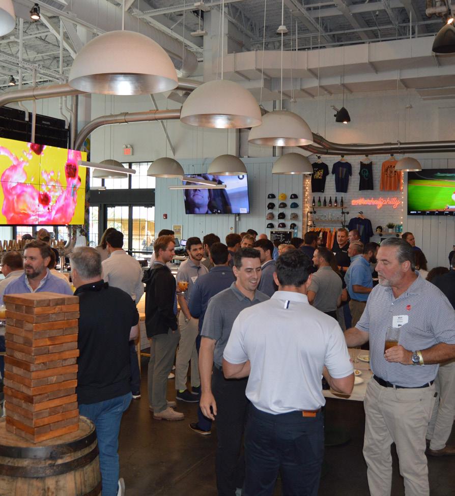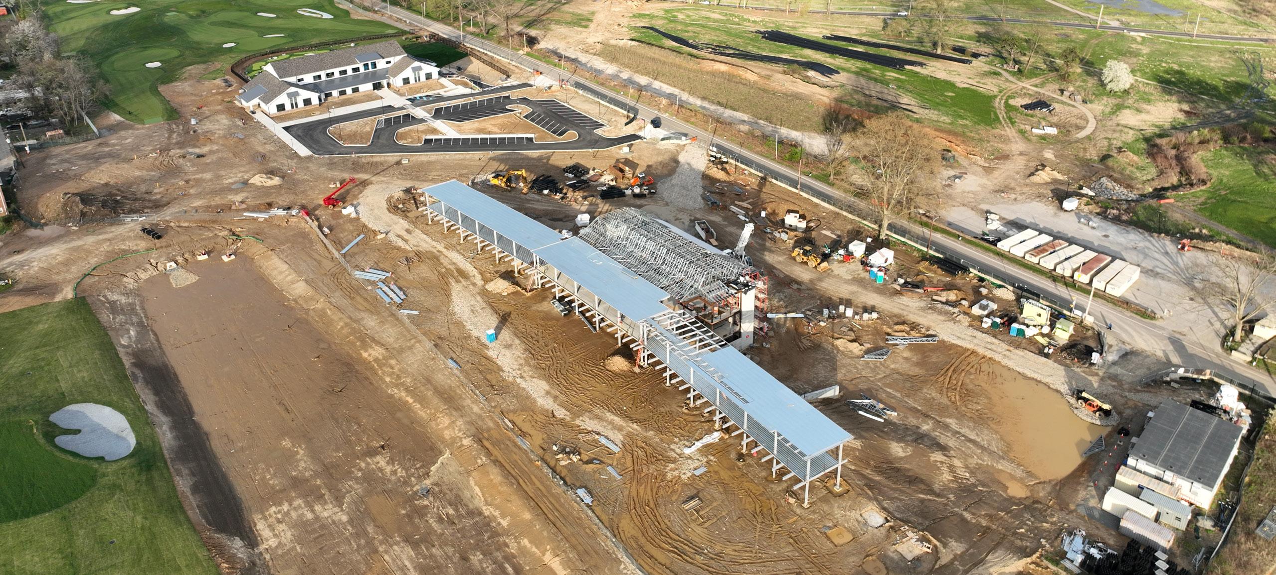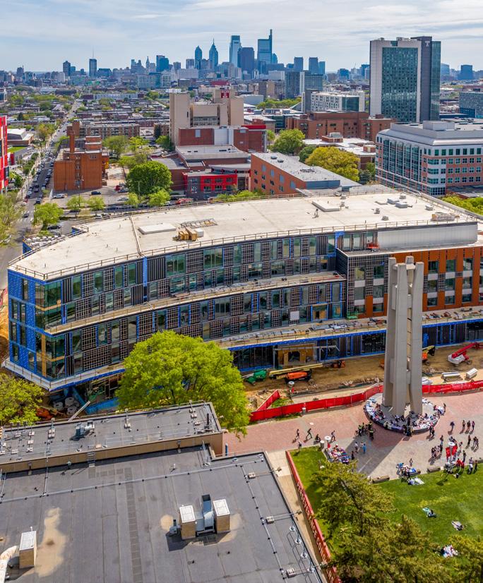 The construction of the Lincoln Financial Center, a twostory golf entertainment and practice center, introduced another layer of complexity with two distinct design teams—, one focused on the core and shell, and the other on the interior fit-out. Regular design charrettes and pull- planning sessions were instrumental in aligning efforts, resolving design conflicts, and maintaining project momentum. The Lincoln Financial Center’s expansive construction scope included excavation and grading, foundations, stormwater management, paving, sidewalks, landscaping, and site utilities. A defining feature of the work was the installation of a prefabricated pedestrian tunnel beneath Lansdowne Avenue, enhancing connectivity across the campus and linking key elements of the revitalized site.