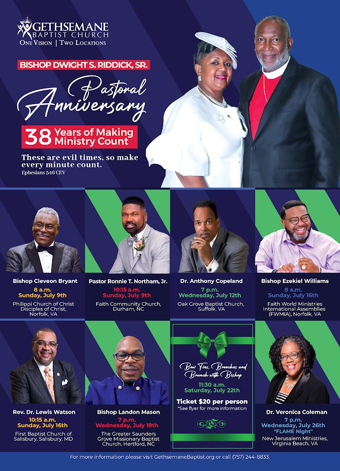 Please join us for Pastor's 38th Anniversary Celebration on the following dates.