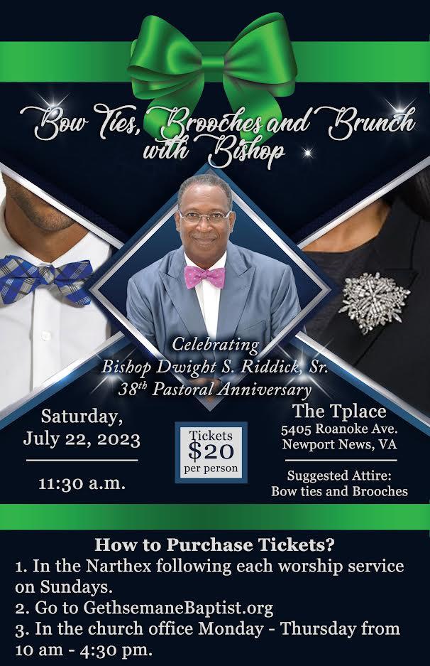 YouarecordiallyinvitedtoBowTies,Brooches andBrunchwiththeBishoponSaturdayJuly22 at10:30AM.