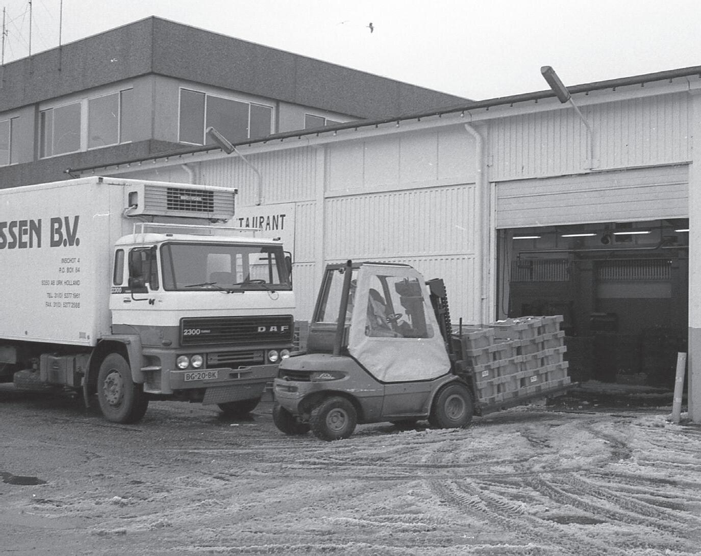 te brengen. Bij hoge percentages water moet de vis steeds in waterbaden en vervolgens aanvriezen. Een proces van soms anderhalf uur, terwijl wij nu binnen tien minuten de vereiste 20% glacering aanbrengen. Die 20% is voor ons echt de limiet en uiteindelijk bespaart dit ook op de energielasten en transportkosten”, aldus Albert Romkes. ,,Neerlandia begaf zich dan ook op een andere markt dan Piet Baarssen. Je kunt echter niet anders zeggen dan dat Piet Baarssen toch een successtory was. Ik heb alle bewondering voor hoe hij met zijn mensen het productieproces steeds verder wist te verbeteren. Hij was heel nauw betrokken bij het productieproces, kocht zelf de grondstoffen zo goedkoop mogelijk in en zorgde ook voor druk bij de verkoopafdeling om optimaal te presteren. Het was echt een voorbeeldbedrijf.” (Afbeelding 32)