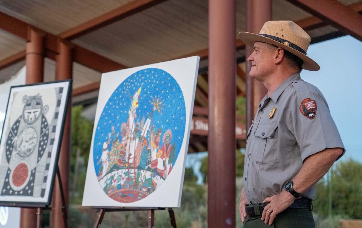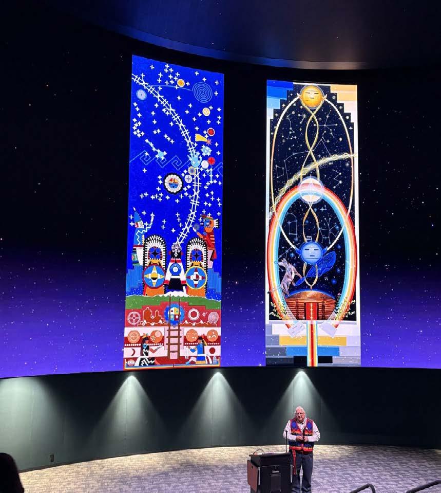 The Dark Skies Team and the Cultural Demonstration Team were invited to Lowell Observatory in September to support the unveiling of Gerald Dawavendewa’s new mural for Lowell’s Astronomy Discovery Center. The mural depicts complex stories and symbols from the Hopi cosmos. Gerald is a frequent collaborator with Grand Canyon’s programs. Congratulations, Gerald!