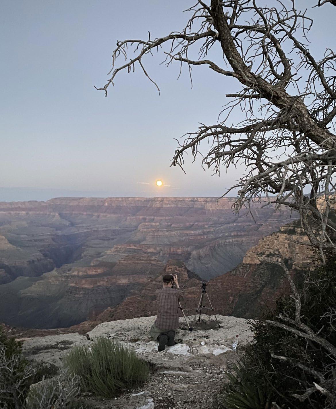 A special thank you and farewell to Michael Quinn, who is retiring after decades of service to Grand Canyon National Park. Michael began his career at the Grand Canyon with the Fred Harvey Company in the 1970s and eventually joined the National Park Service in 1992 as the park’s museum photographer and photo archivist. Since then, Michael has photographed and filmed countless historic moments and events for the park. Some of his most beloved photographs are of the full moon rise over the Canyon, which he attempts to photograph nearly every month. Pictured here is Michael doing what he does best-capturing the Canyon’s beauty to share it with others. Thank you Michael, for your extraordinary work over the years. You are a Grand Canyon living legend.