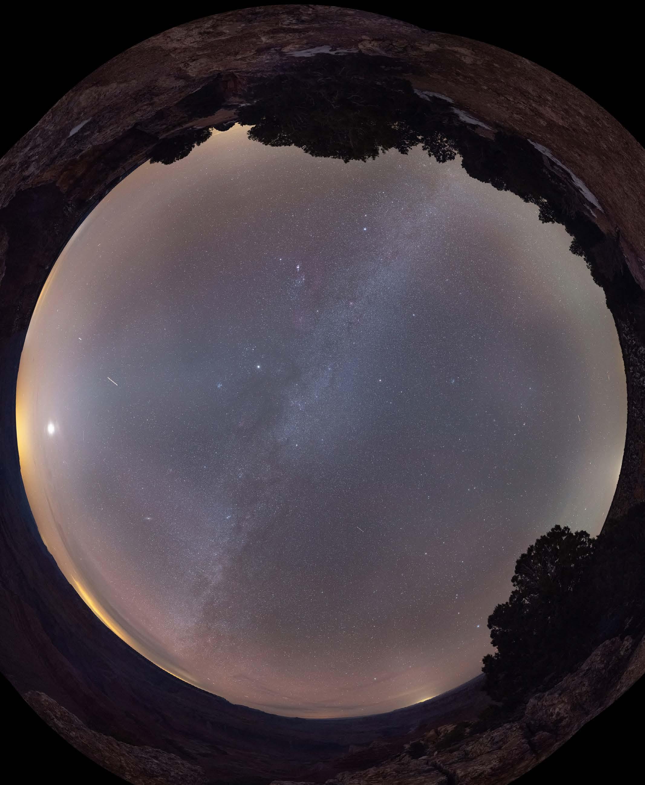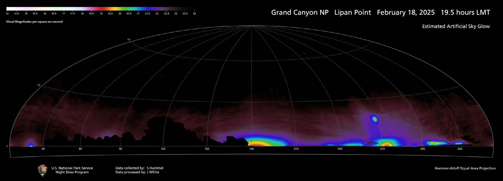 A 360 degree fisheye-lens photo from Lipan Point. Astronomer in Residence Stephen Hummel took several of these shots from around the park. These photos provide visual understanding of light pollution along the horizons.