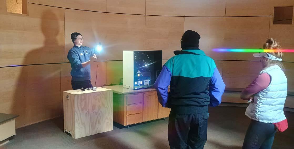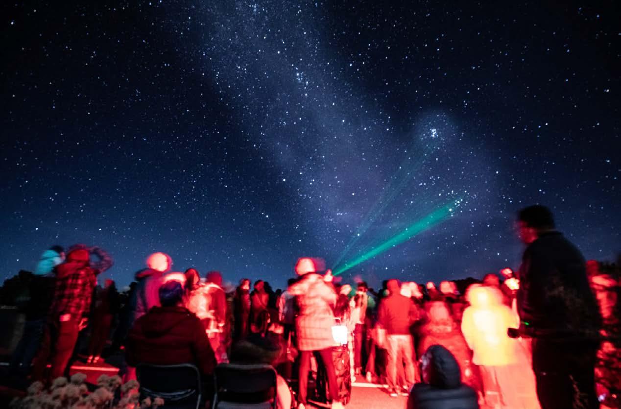 (Left) Dr. Shields presented a few laserguided constellation talks to hundreds of visitors. She followed the talks with an introduction into yoga nidra, and the healing qualities of the night.
