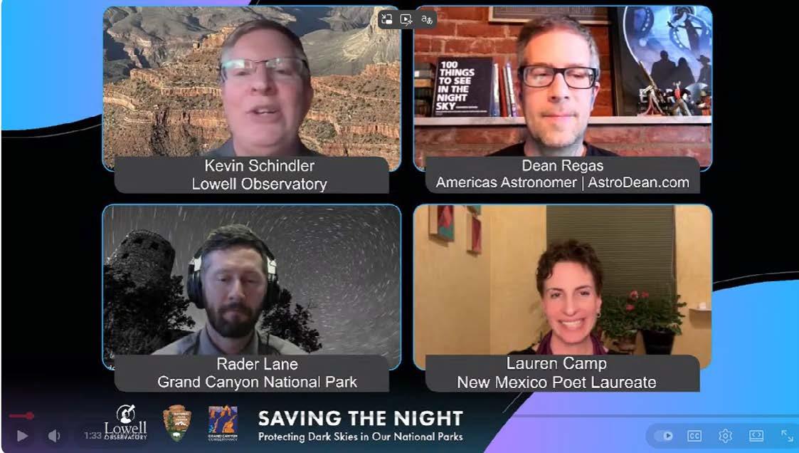 Grand Canyon Conservancy, in partnership with Lowell Observatory, hosted a “Saving the Night” livestream event for International Dark-Sky Week in April. Here, Astronomer in Residence alumni Kevin Schindler, Dean Regas, and Lauren Camp, together with Ranger Rader Lane, discuss the importance of natural darkness. Watch the recording here.