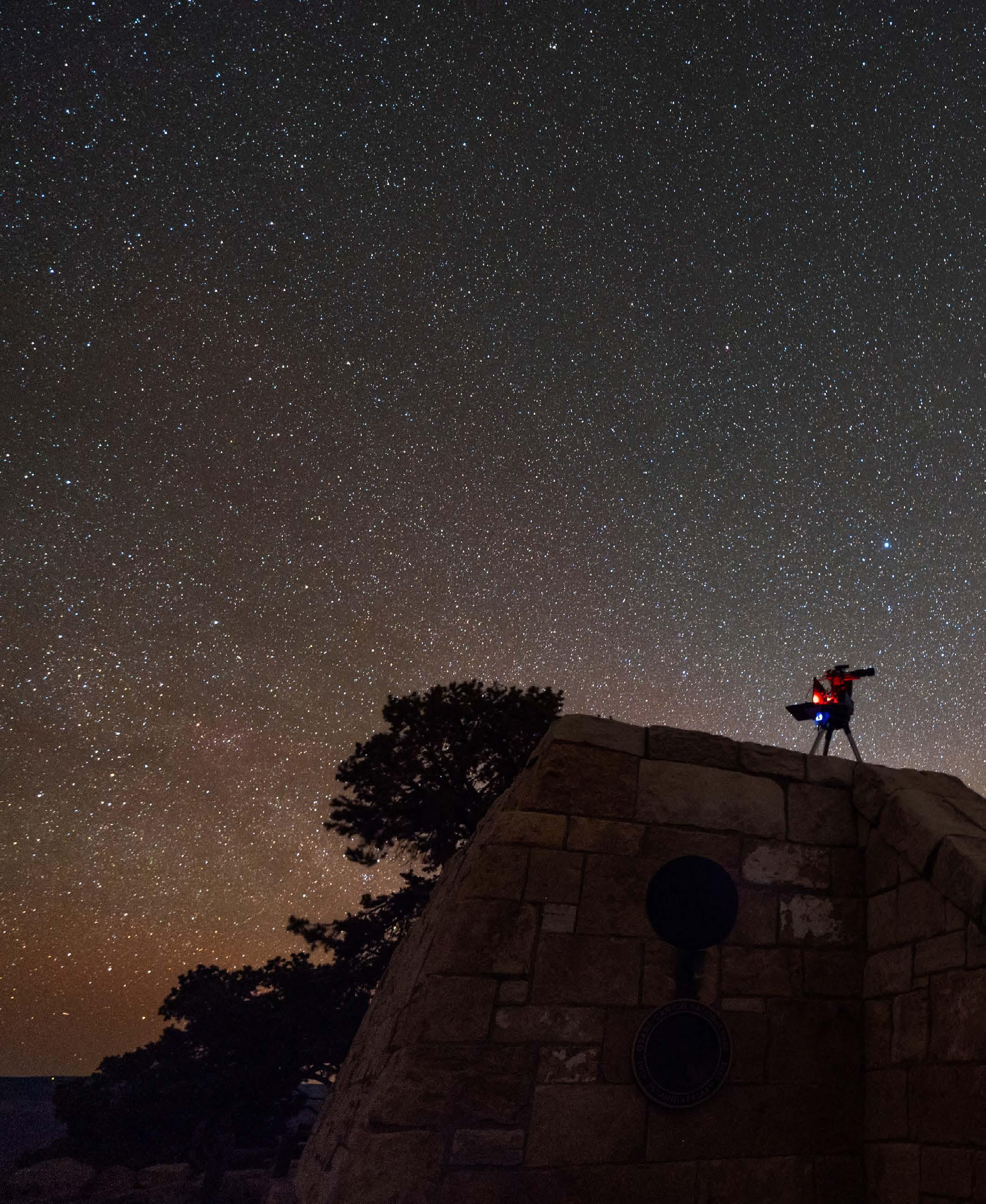 Thanks to Stephen Hummel and the Grand Canyon Conservancy’s Astronomer in Residence Program, the park collected extensive data on the quality of our night skies this year. Here, Hummel sets up his monitoring equipment at Powell Memorial, where the last extensive study of our night skies was initiated in 2015. This data is crucial to understand how light pollution has changed in and around the park over the last decade.