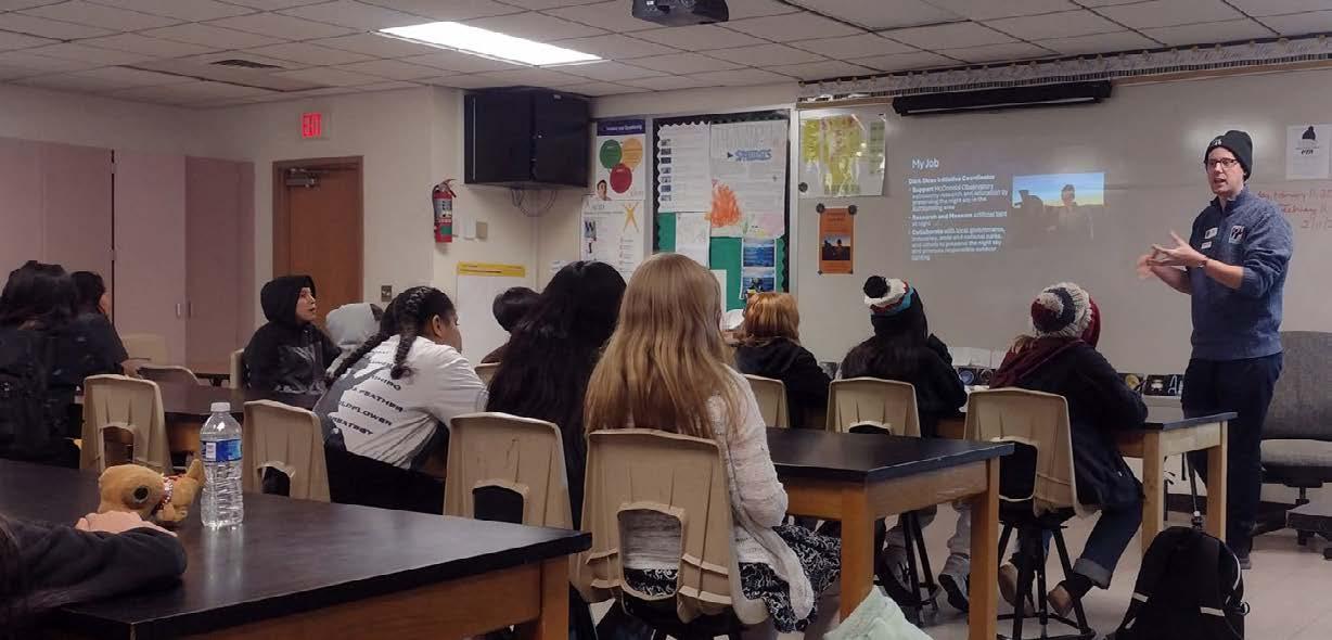In 2013, Grand Canyon Conservancy hired a specialist to map out all the lights in the park. She inventoried 5,000 lights! In order to become an International Dark-Sky Park, an initial 67% of the lights had to be retrofitted as “dark-skyfriendly.” That meant shielding fixtures, using warm bulbs, adding timers, or removing some all together. We achieved 67% compliance in June 2019.