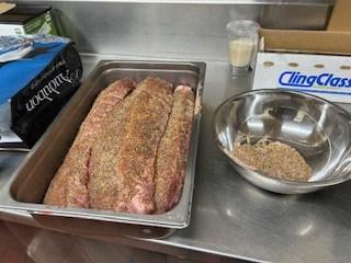 What time is it? It’s time for ribs! I enjoy baby back ribs slowly smoked with a sweet and savory dry rub then finished with a nice mopping of BBQ sauce. And that’s exactly what I cooked for my guys for this month’s Crew Q. So, let’s get right into it. I like to apply the dry rub on the rib racks the day before, so all that flavor has time to seep into the meat and bring out that great pork taste. I like to go heavy with brown sugar and a nice mix of spices such as paprika, chili powder, onion powder, garlic powder, ground coriander, ground cumin, salt and black pepper. The ratio I use is roughly 3 parts brown sugar and 1 part spice mix. So combine 1 ½ cups of brown sugar and a teaspoon each of the spices. That will give a nice sweet dry rub. Coat the racks of ribs the night before and then wrap them in cellophane and refrigerate overnight. For the sauce, which is used towards the end of the cooking process is also sweet and savory. Start by dicing and sauteing a yellow onion along with 3 cloves of crushed garlic in olive oil. Then add 2 cups catsup, ½ cup brown sugar, ½ cup apple cider vinegar, ¼ cup water, ¼ molasses, 2 Tablespoons Worcestershire sauce, 2 tablespoons tomato paste, 1 table spoon yellow mustard and 1 teaspoon each of; garlic powder, onion powder, chili powder, paprika, black pepper. Bring the sauce to a boil then reduce the heat and simmer for 10 minutes and boom you have a sweet BBQ sauce that still has a nice tang to it. When it comes to cooking the ribs I use a homemade 4 chamber smoker. I start the ribs at 6:00 am at a temperature of 235 degrees and by 9:00 they are ready to eat. But a Webber BBQ works just fine. Simple use the indirect cooking method where the coals are off to the side and the ribs are in the center of the grill. I like to mop the ribs with sauce during the last hour of cooking. This keeps them from drying out and the sauce plays well with the rub. Now simply slice the ribs into single bone pieces and it’s rib time baby! I also like to reserve a bit of sauce and have it in a squeeze bottle in case the guys want a little extra on their ribs.