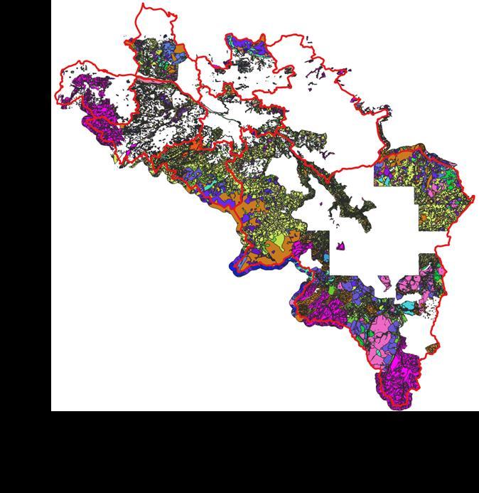 Figure 4: Distribution of butterfly records showing spatial clustering and the selection of habitat polygons based on aerial interpretation.