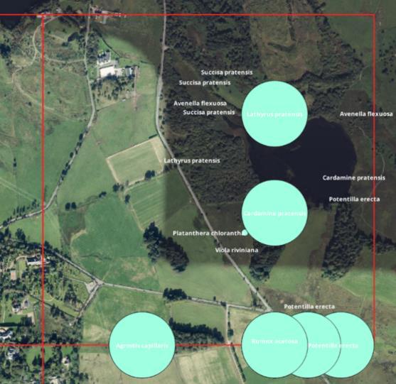Ecologists based their decision on the species present alongside aerial images (Figure 3). For example, records accurately pinpointing relatively ubiquitous species (e.g. Cardamine pratensis - Lady's Smock) were ignored, whereas rarer more characteristic species (e.g. Platanthera chlorantha – Greater Butterfly Orchid) or the occurrence of several indicator species (e.g. Achillea millefolium - Yarrow, Hypochaeris radicata – Cat’s Ear, Lathyrus