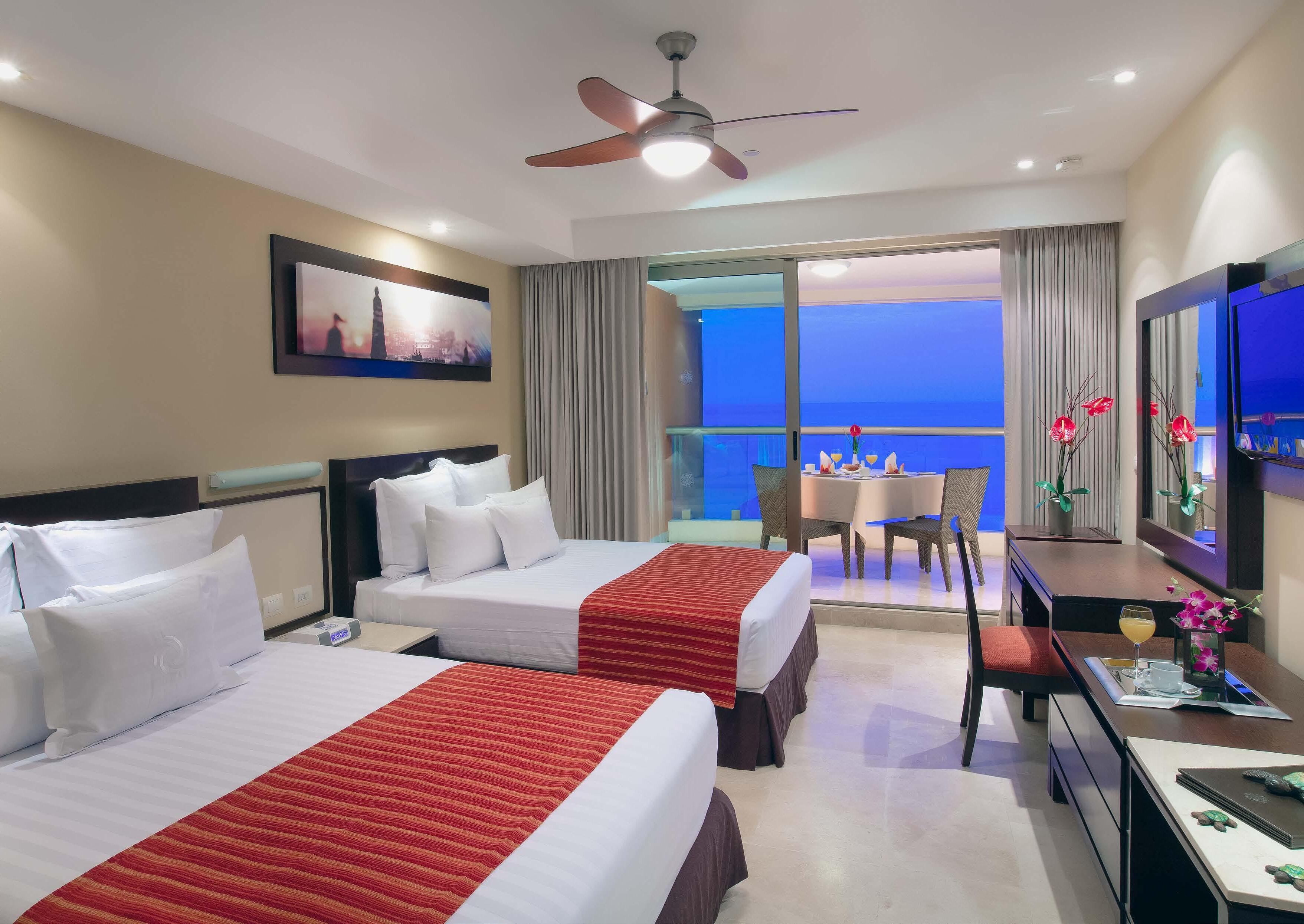 Disfrute de la belleza natural del mar desde su balcón privado. La habitación Superior Deluxe cuenta con dos camas dobles, perfectas para viajes en familia o con amigos, ofreciendo una mezcla de lujo y confort. AMENIDADES CAPACIDAD MÁXIMA: