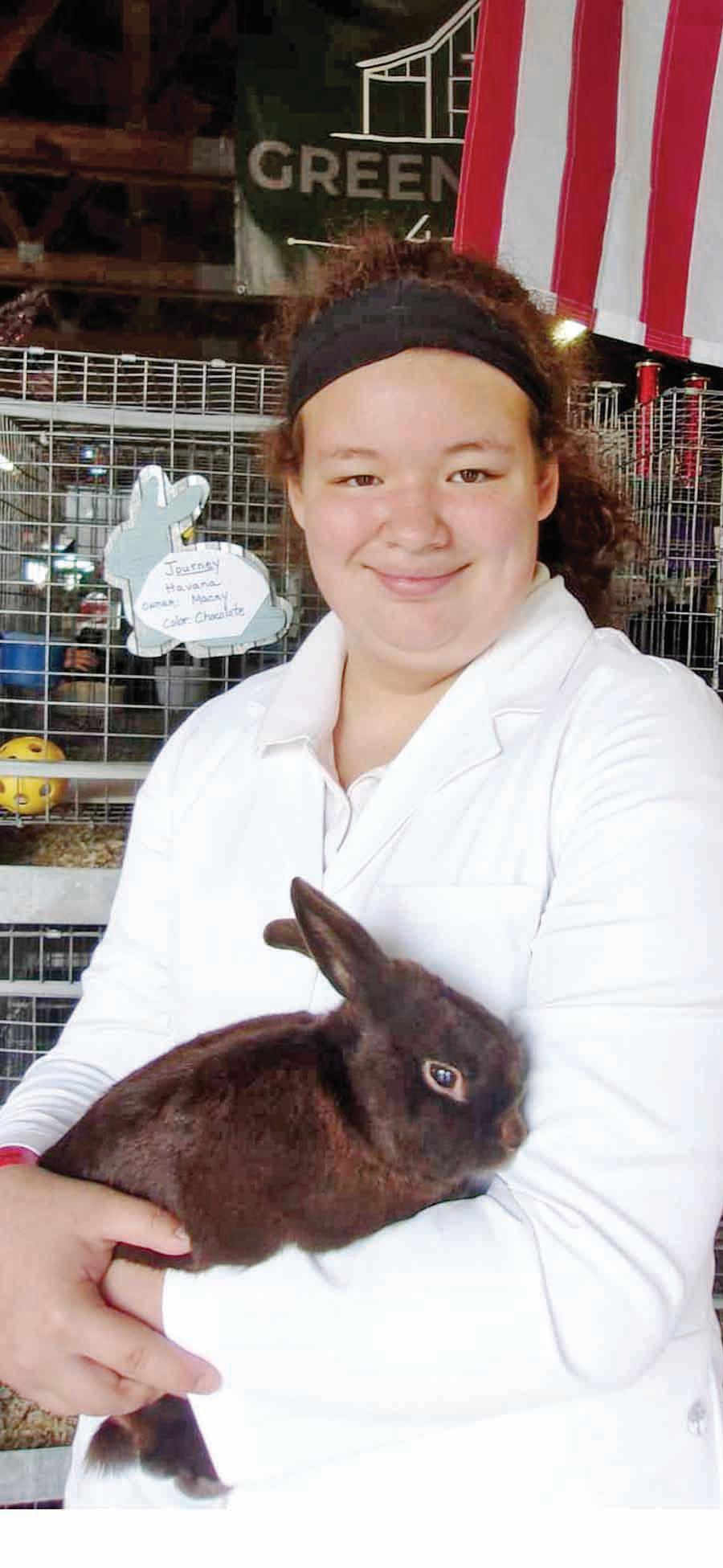 Meadow Luoma, 14, of Burton is in her first year of 4-H. Mead ow is a member of Geauga Prime Time 4-H club with her fancy chickens. She is pictured with Rosa.