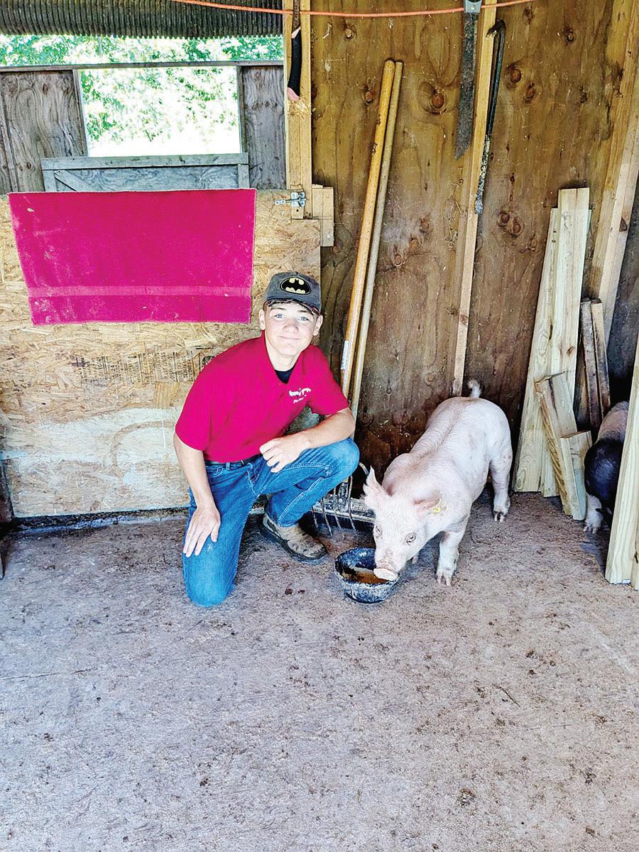 Bradley Sheets and pig, Stripes. 3rd year Swine Project. 1st year placed 8th in Showmanship.