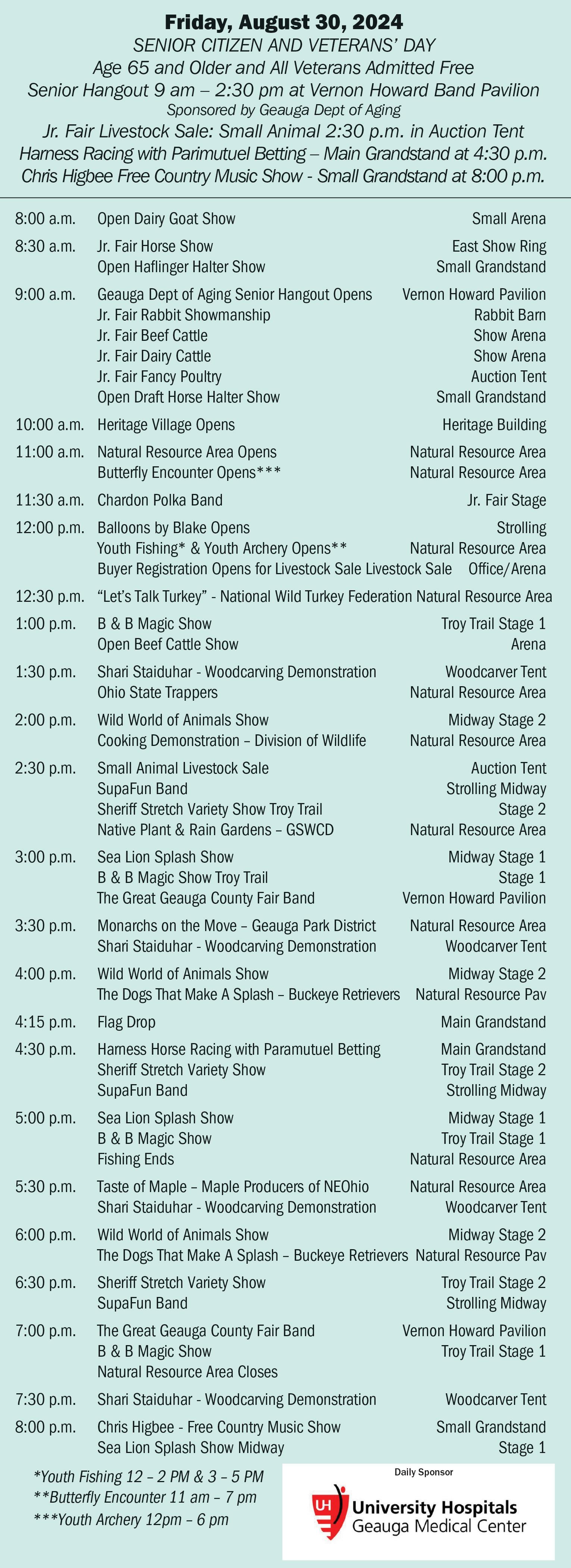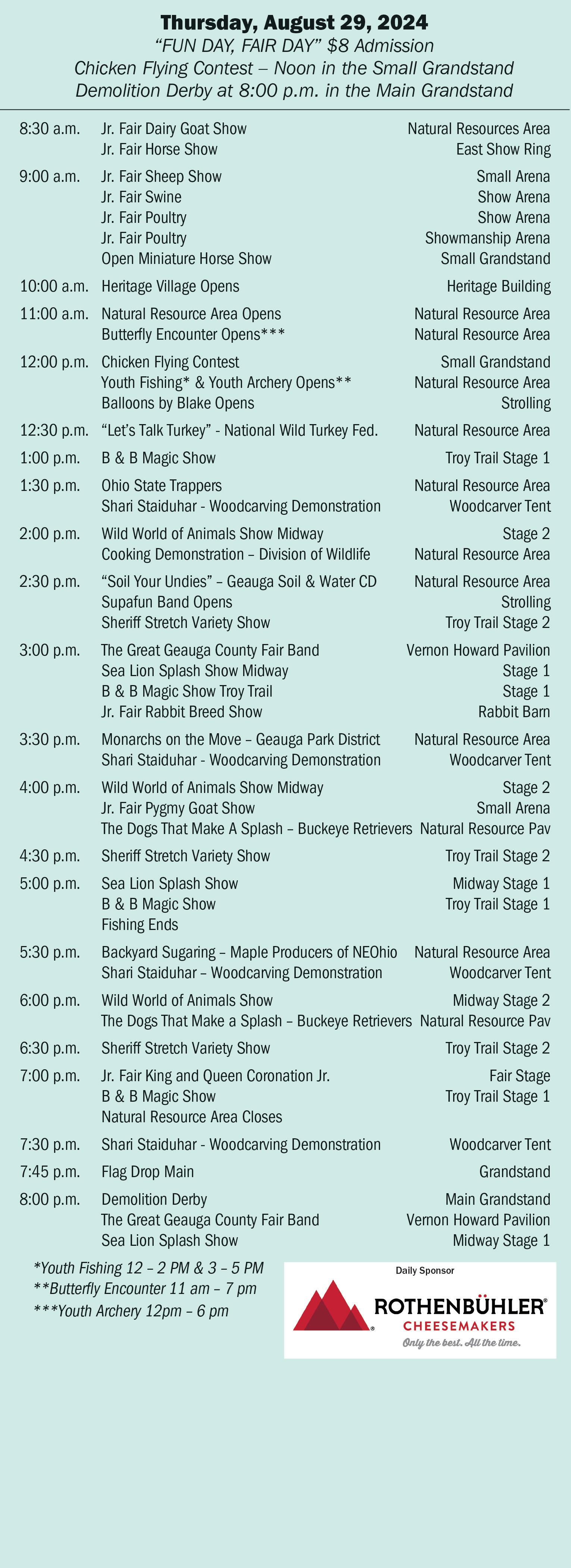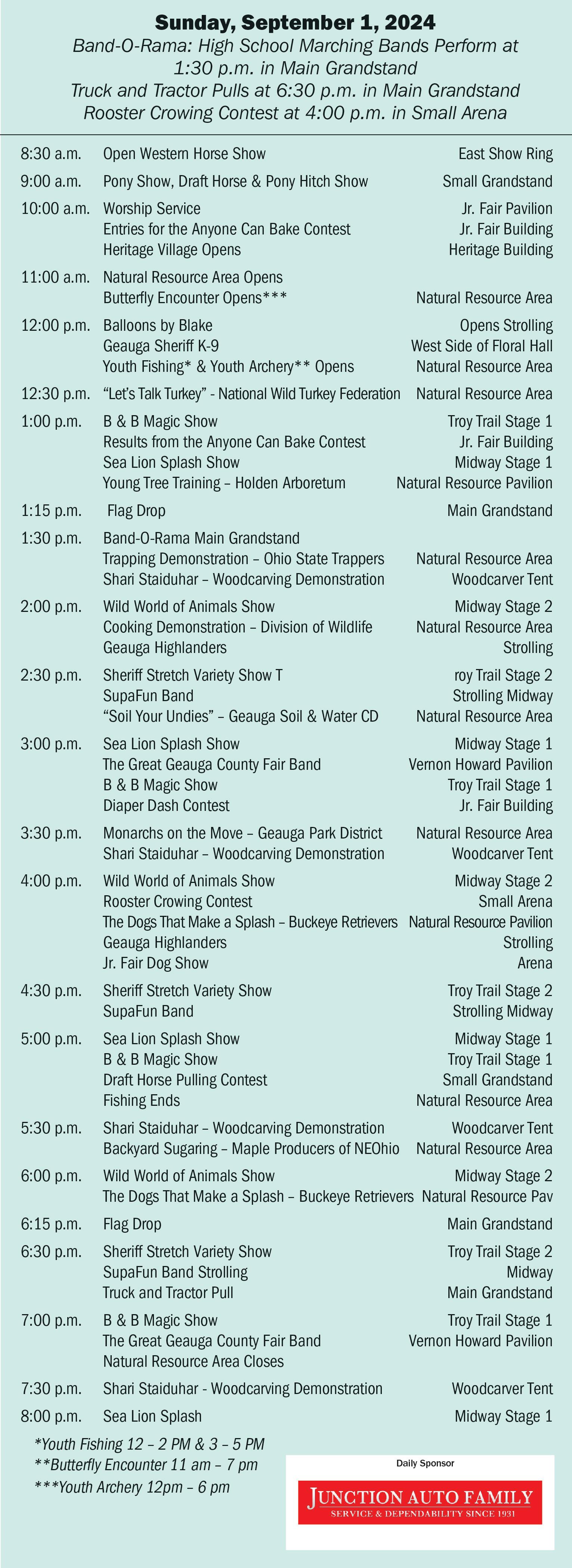 This year, the Small Market Animal Sale will be at 2:30 p.m. Aug. 30 in the Auction Tent and the Large Market Animal Sale will be held at 4 p.m. Aug. 31 in the Arena.