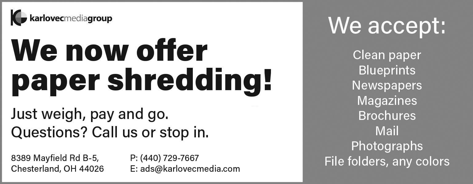 Did you know Karlovec Media Group prints business cards? Prices start at only $30 for 500 (B&W, 1-sided, no bleed). Call 440-729-7667 or email ads@karlovecmedia.com.