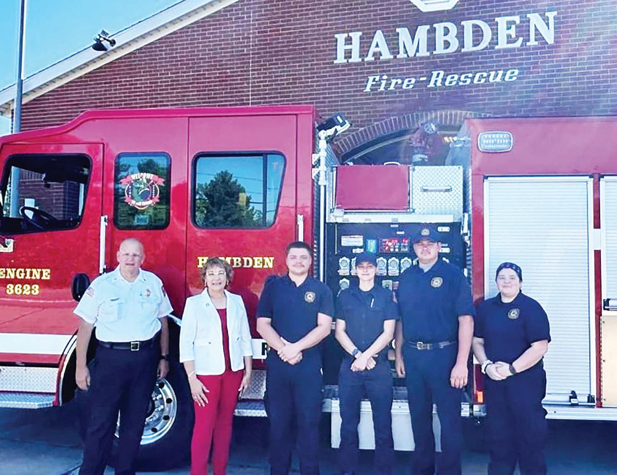 Pictured, from left, are Hambden Fire Chief Scott Hildenbrand, Ohio Sen. Sandra O’Brien, firefighter Bobby Kosie, firefighter Shianne Wright, Capt. David Baird and firefighter Ella Rhodes.