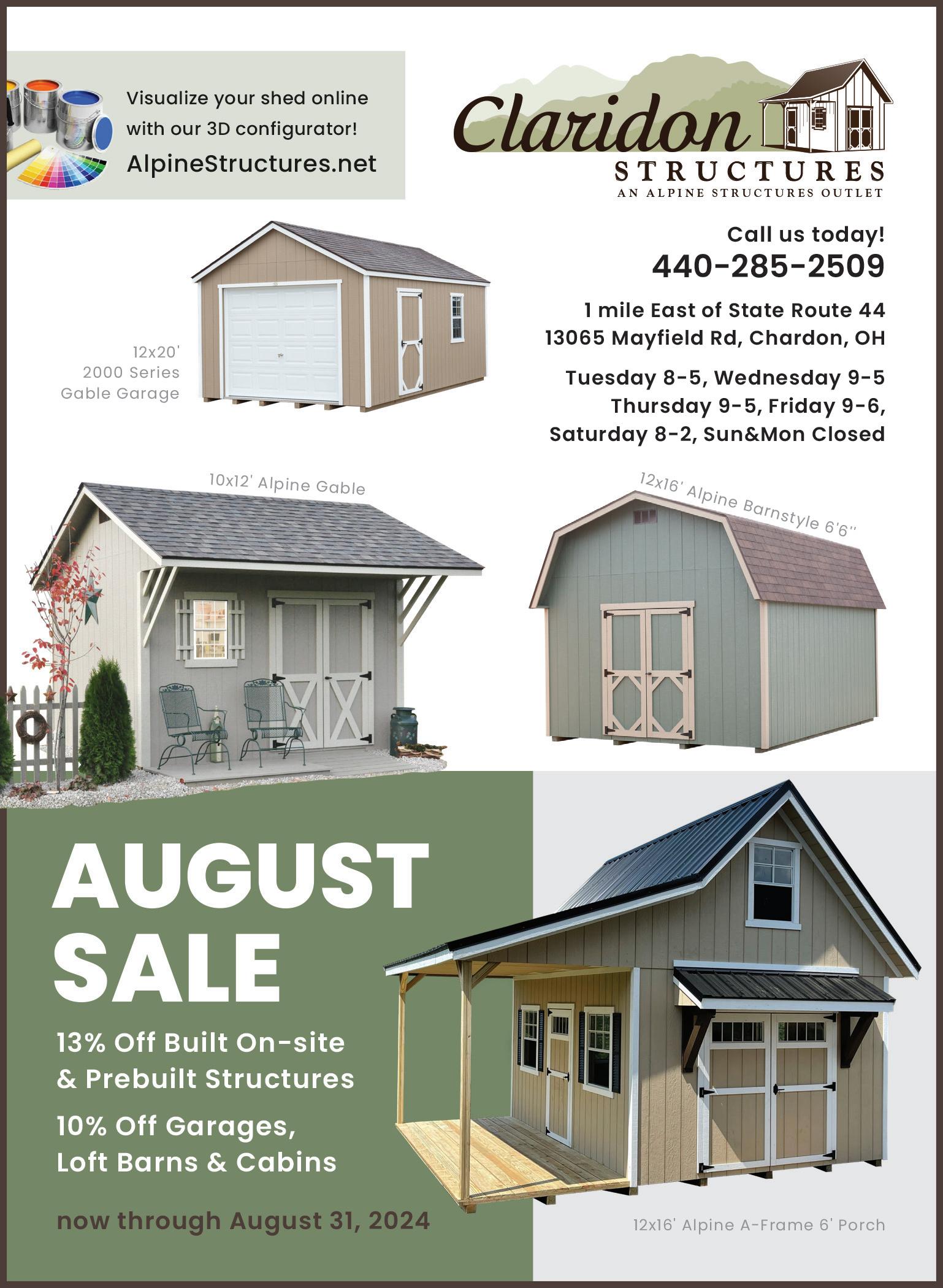Aug 30-31, 9a-4p, 18071 Tilden, Troy Township, close to Rts 700/422. Tons of items left, FREE items. Aug 15-17, 10a-5p, 13566 Stoney Springs Dr., Chardon. Come One, Come All! Multi Family Garage Sale. Char-Broil gas grill, motorcycle helmets, tools, wooden dollhouse, vintage toys, and much, much more. CASH ONLY.