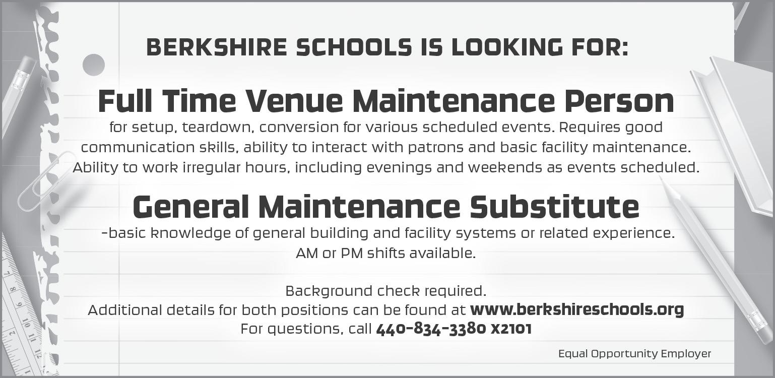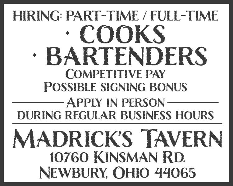 Mary Yoder’s Amish Kitchen is hiring kitchen staff. Call 440-632-1939 and ask for Kathy for more information.