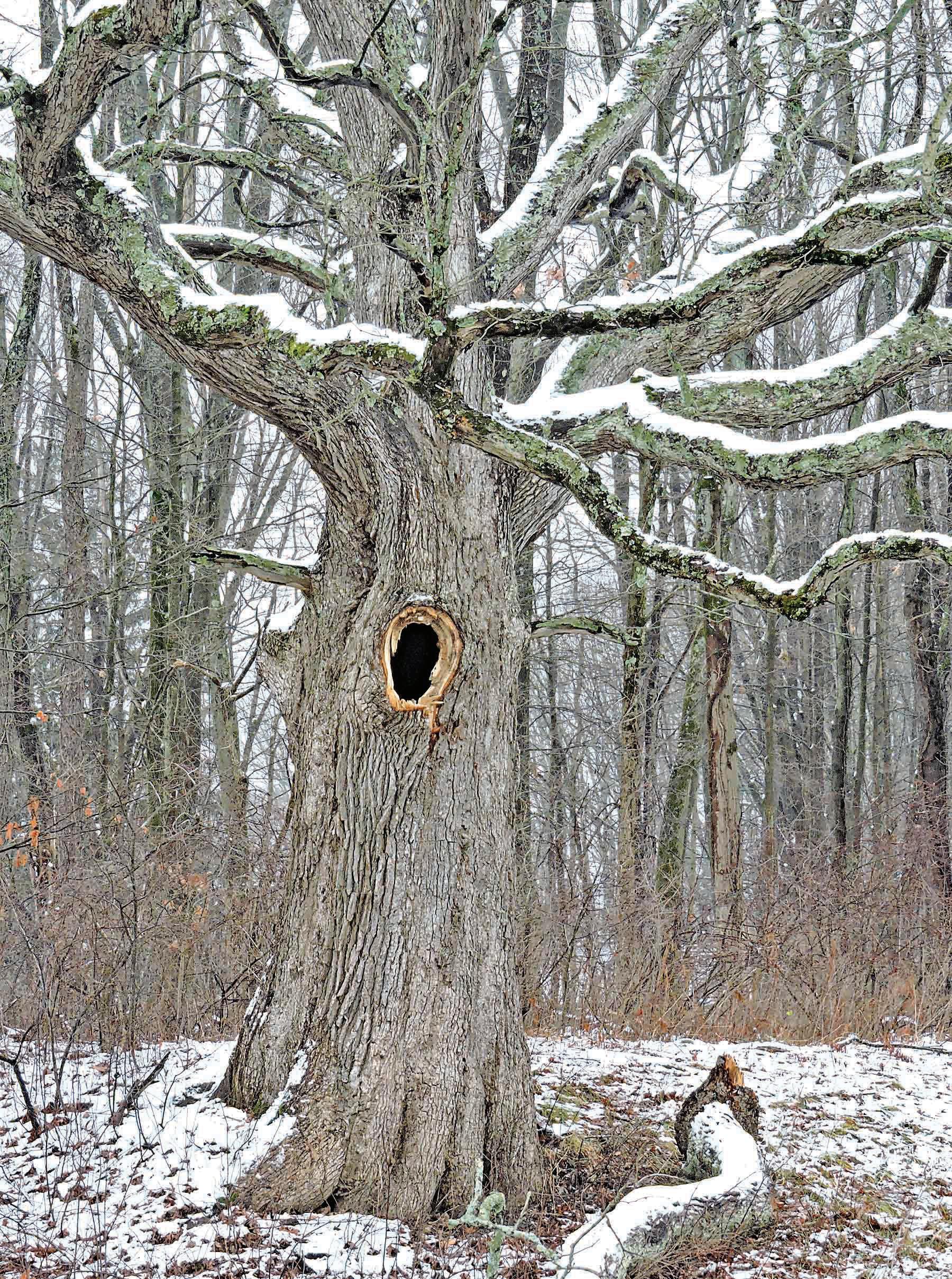 Several species of squirrels find arboreal excavations convenient for rearing their young. The impressive black rat snake is a regular visitor to hollow trees, either waiting patiently in the shadows for an unsuspecting rodent to enter, or to feed on eggs and youngsters it has so efficiently “sniffed” out.