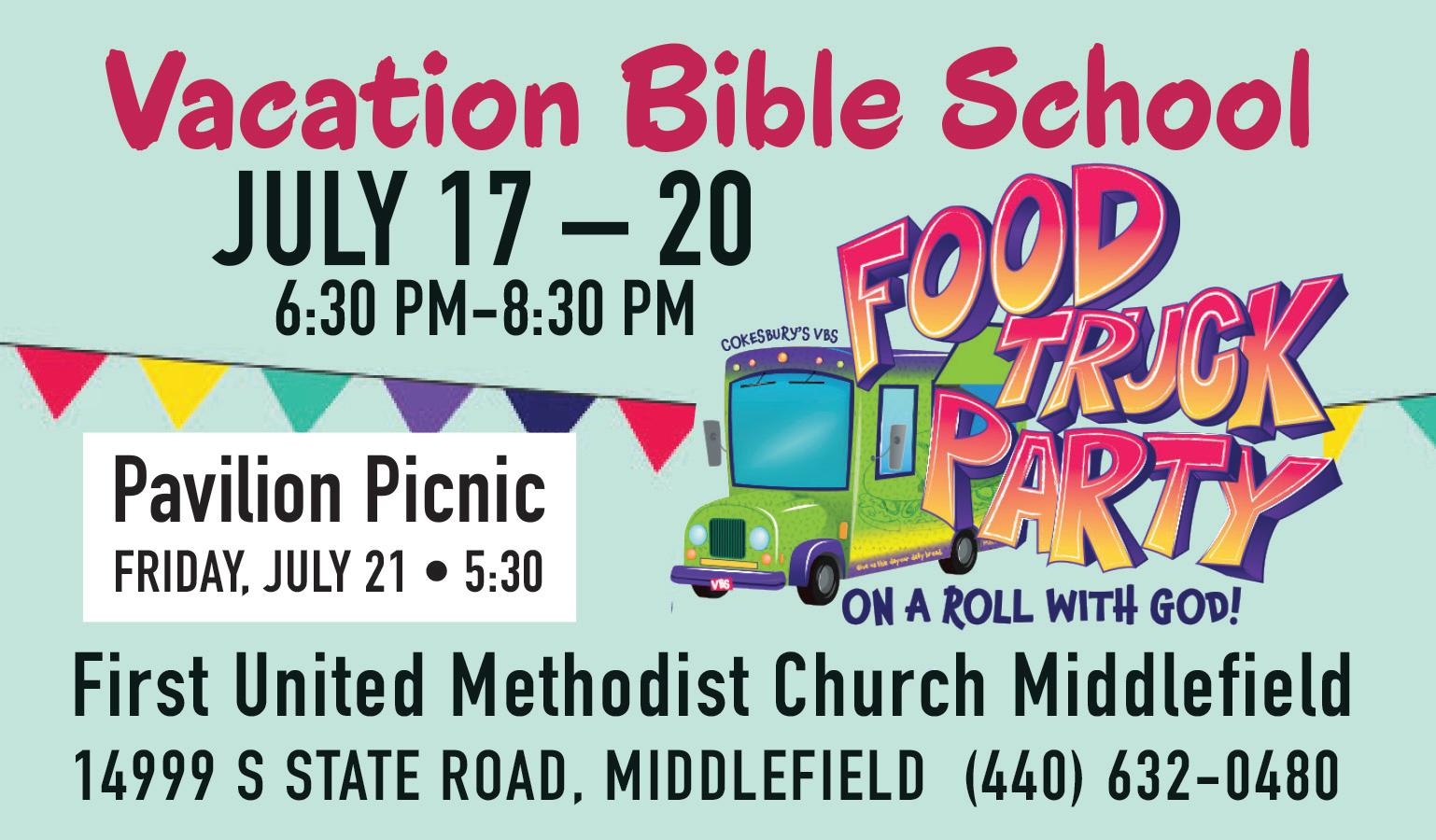 First United Methodist Church is hosting “Food Truck Party on a Roll with God” vacation Bible school at the church located at