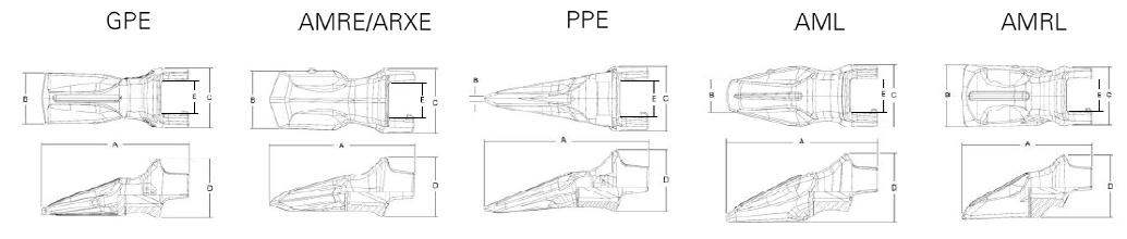 AMRE - Material mit hohem Abrieb und Felsgestein Baggerzahnformen