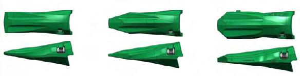 MaxDRP-Zähne besitzen eine extrem dicke Zahntasche mit verstärkter Rippe, Verschleissmarkierungen, zusätzlichem Keilschutz und mehr Verschleissmetall als herkömmliche Zähne.