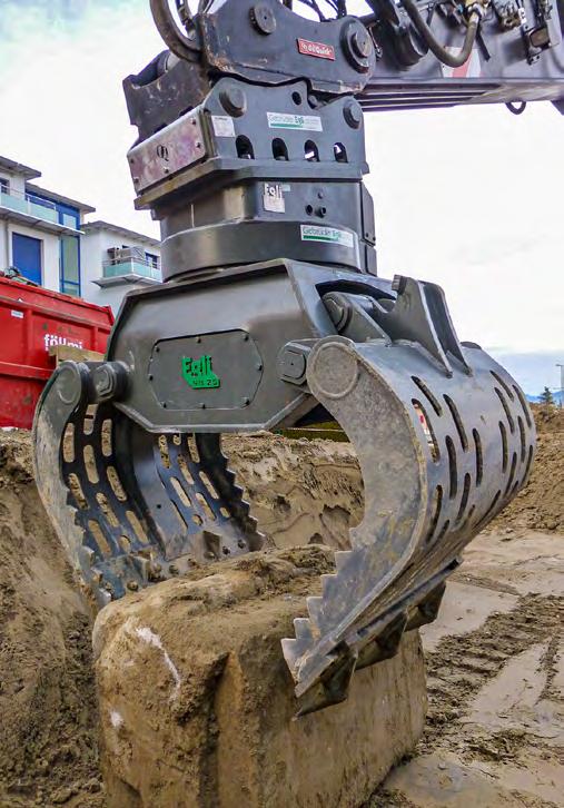 Der Egli Greifer ist zudem hilfreich bei RĂĽckbau- und Steinsetzarbeiten, Erdaushub und Verladung von grobem SchĂĽttgut sowie bei Busch- und Strauchwerkverladung.
