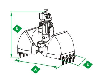Durch die aussenliegende Anlenkung der Schalen kann der komplette Schaleninnenraum (190 l) mit Aushubmaterial befĂĽllt werden und wird nicht durch innenliegende Umlenkungen behindert. Der gesamte Greifer ist fĂĽr die Betriebslasten eines 22 t Baggers ausgelegt.
