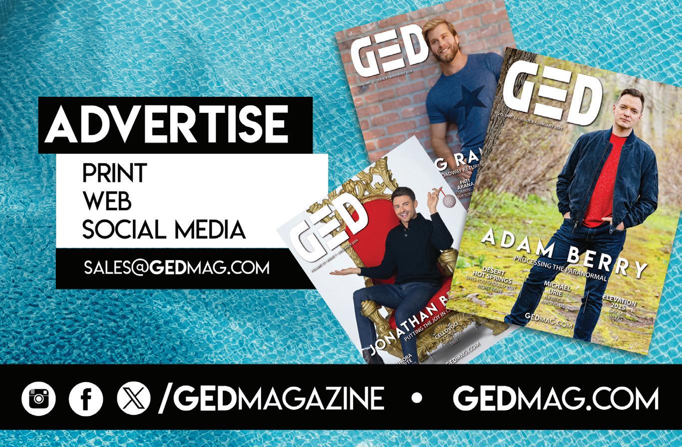 is committed to bringing you the best in LGBTQ entertainment, travel, and lifestyles. Sign up for our monthly insider newsletter. Insiders will automatically be entered into future drawings for trips, event tickets, dinners and more. And for all the updates on social media, follow us on Facebook, Instagram, and Bluesky @GEDmagazine.