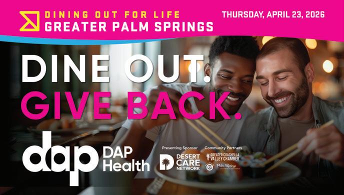 DAP Health invites residents and visitors across the Coachella Valley to participate in Dining Out For Life® Greater Palm Springs on Thursday, April 23, 2026.