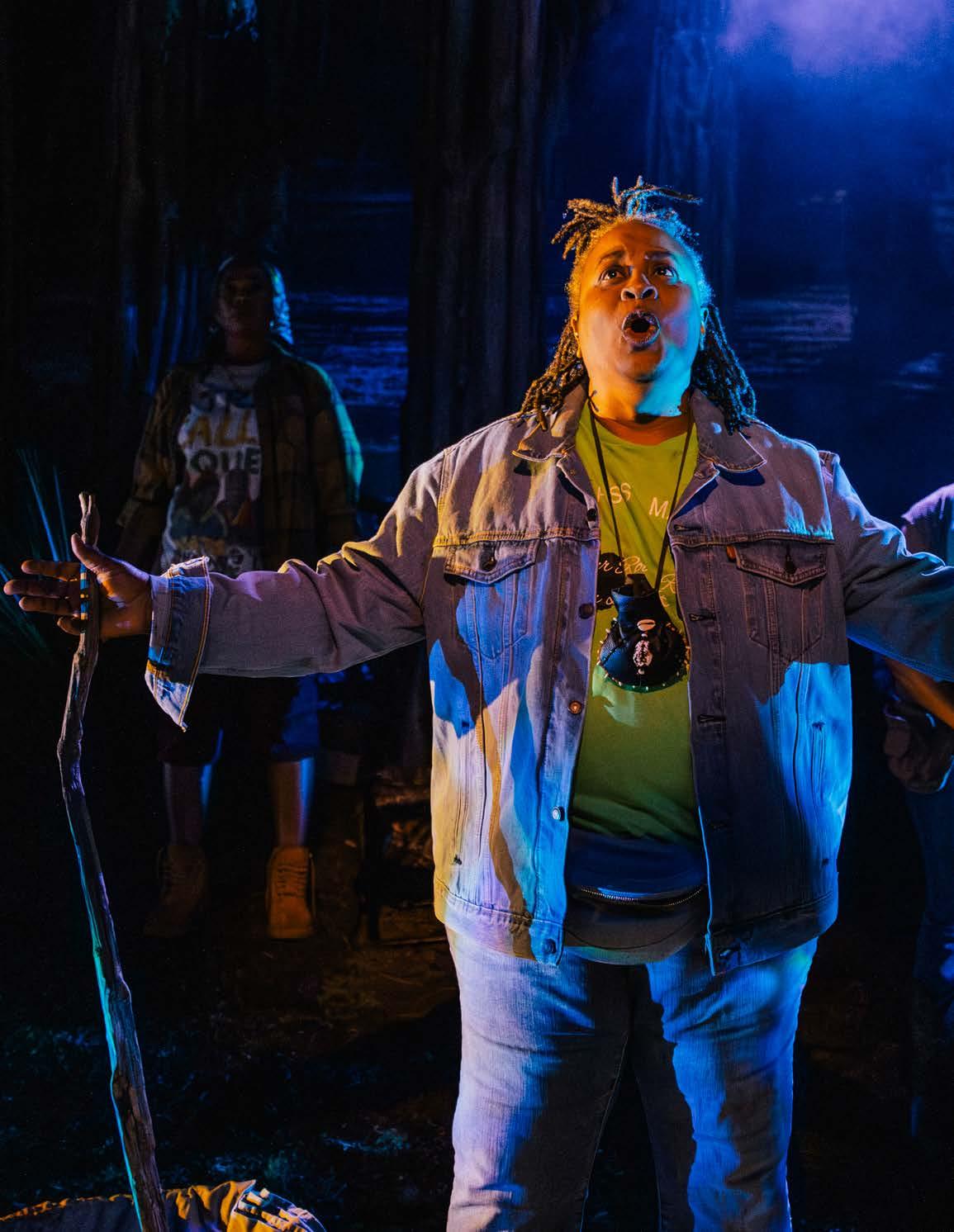 I hope you feel some of that power in this play. Here in this sacred space we call the theater, I honor the genius and generosity of the Black South and strive to be in conversation with the works of Dr. Barbara Ann Teer, Israel Hicks, Jeffrey Nickelson, Ebony Noelle Golden, Shay Wafer, Lorraine Hansberry, Dr. Ron Himes, vickie washington, Woodie King Jr., Tarell Alvin McCraney, Eric Lockley, Belynda M’Baye, Lynn Nottage, Lynda Gravatt, Katori Hall, Tricia Hersey, August Wilson, Dominique Morisseau, Jenny Koons, Nikki Vera, Marcus Gardley, Jonathan McCrory, Sade Lythcott, York Walker, Princeton James, Roberta Uno, Michael Thomas Walker, Rodney Hicks, Marshall Jones IlI, Cajardo Lindsey and all collaborators past, present and future who believe in the transforming power of the stage.