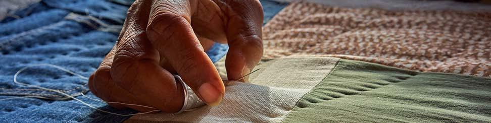 MARY MARGARET PETTWAY STITCHES A QUILT.