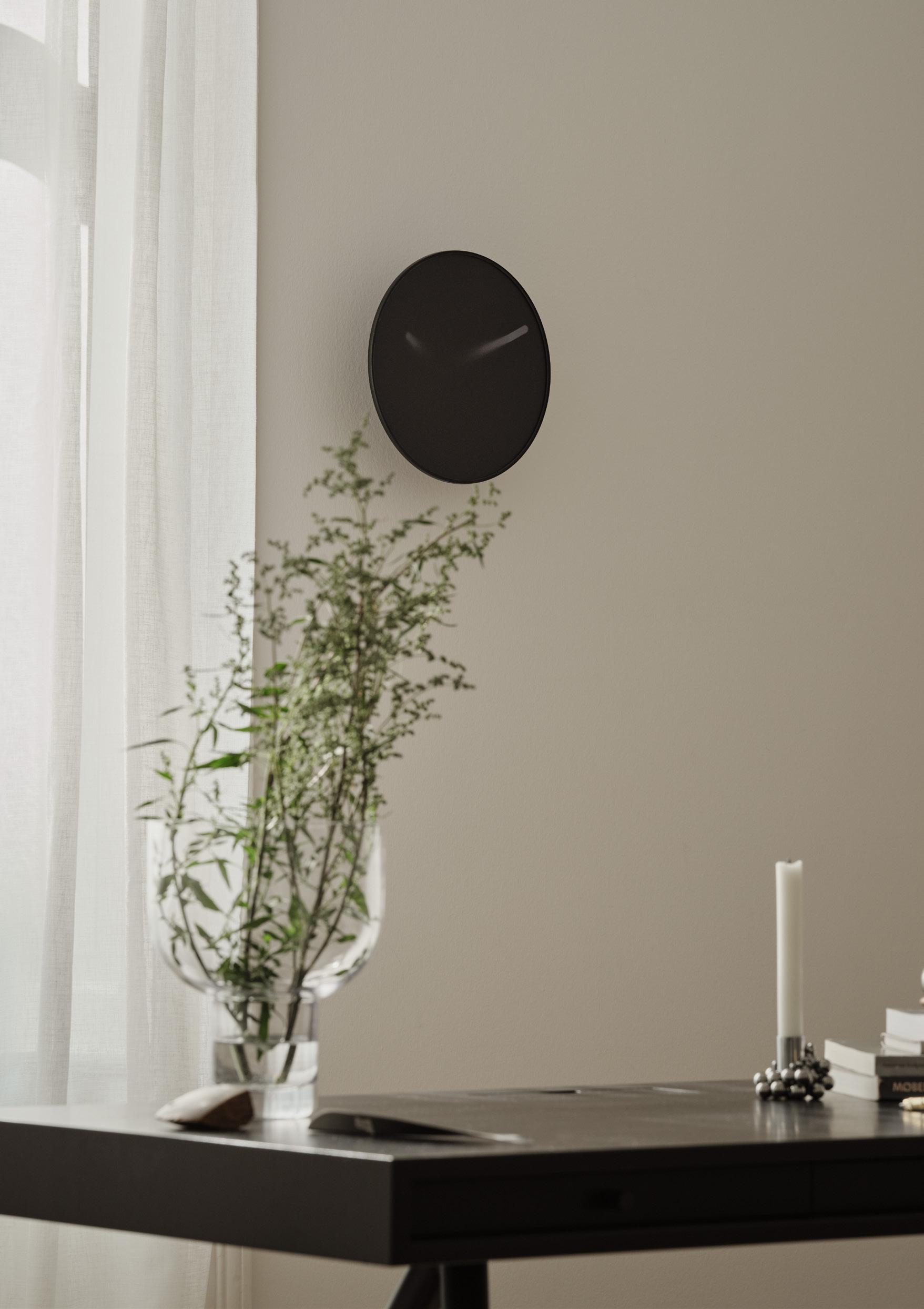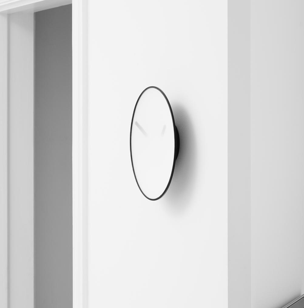 The Momentt wall clock is inspired by the idea of overcoming time limits, experiencing it more than a feeling and displaying it in a poetic way. Momentt consists of a funnel-shaped, matt steel housing with a diffused front glass. With Momentt, time seems to blur with space and the hands magically disappear into the depth of the center of the clock. Momentt is therefore not just a technical display of time, but rather a poetic object that makes us think about time and yet visualizes the time in a subtle way.