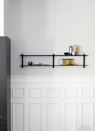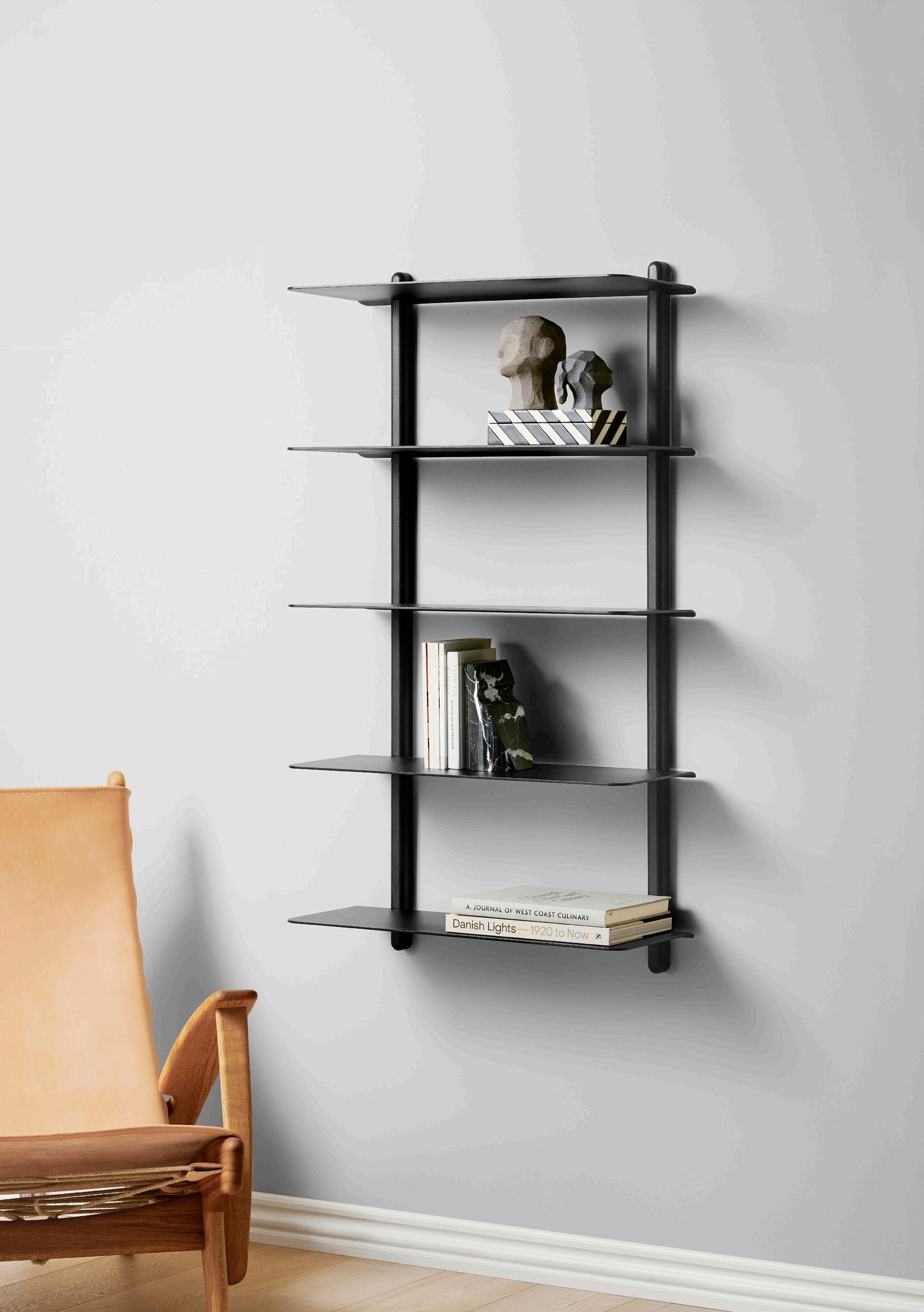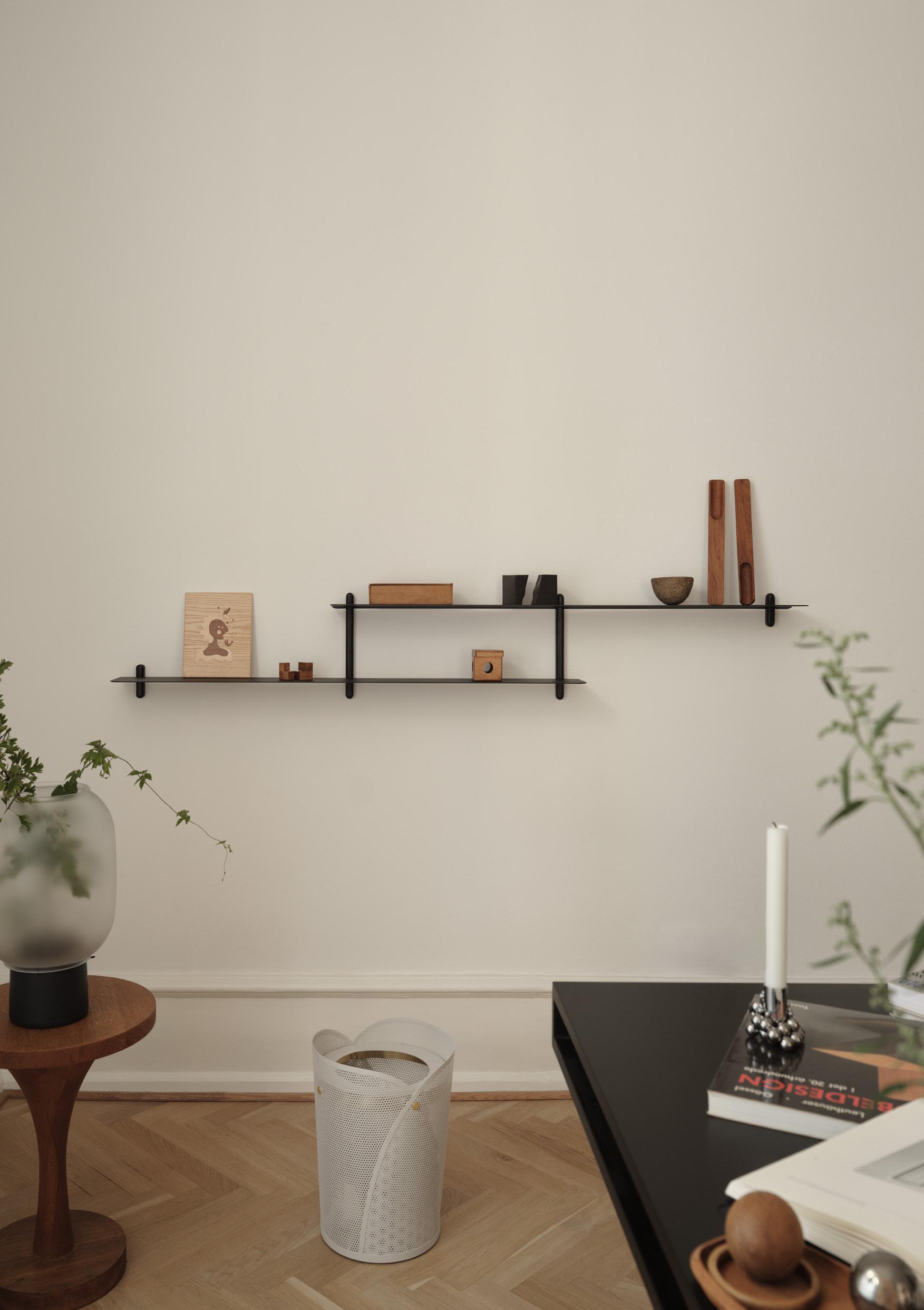 Nivo is a minimalistic wall shelf designed by Böttcher & Kayser for Gejst. With no unnecessary details and only clean lines Nivo hangs lightly and elegantly on the wall. Every component has been carefully thought out both in terms of design, form and function. There are no visible screws and the shelves are smoothly plugged in to the wooden poles, that have slits made exactly to fit.