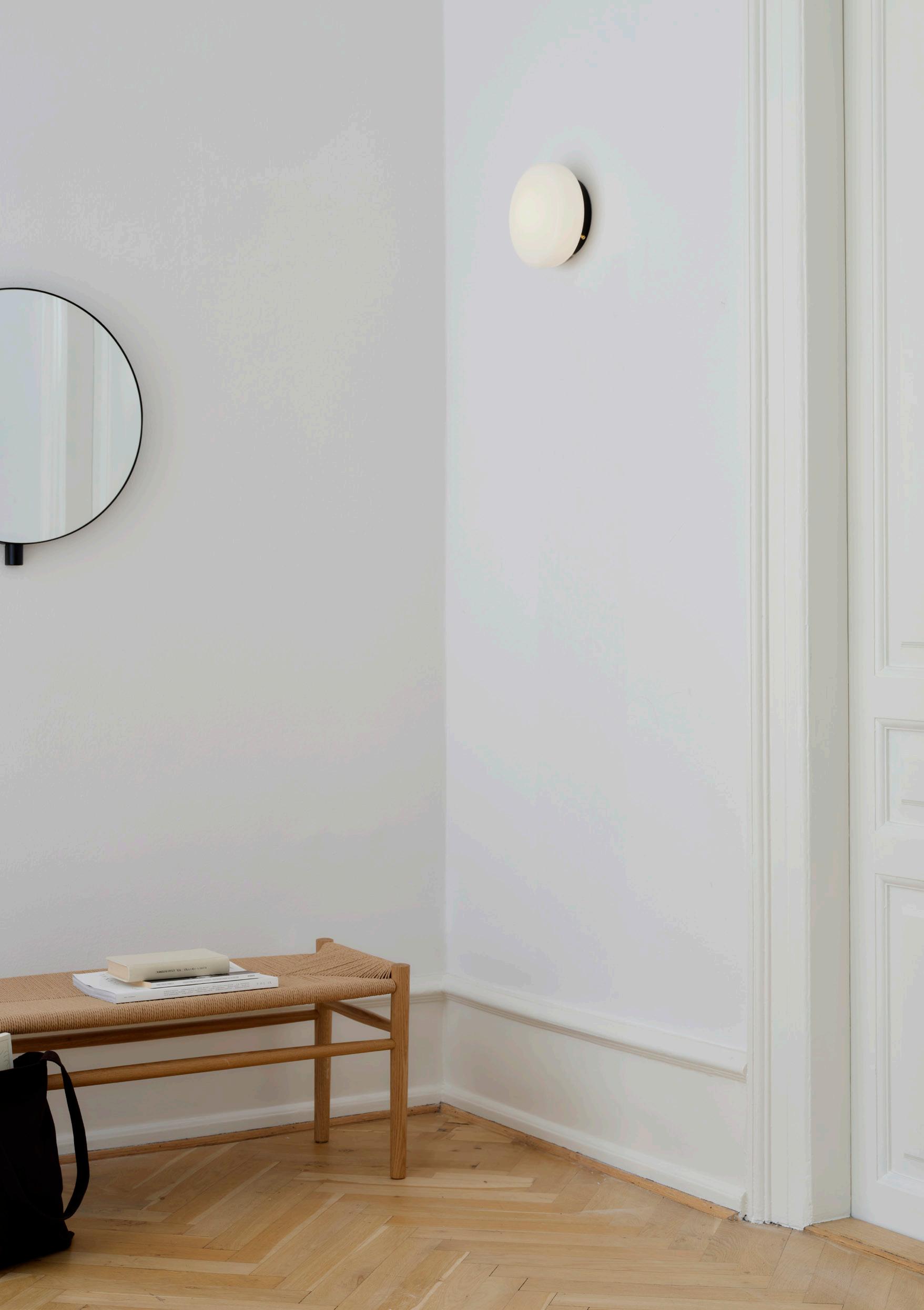 Opa Wall Lamp is a small opal lamp suitable for both wall and ceiling. The aim was to create a clean and effective glass lamp which could work in small spaces ex. hallways, entrance spaces or beside pictures or mirrors and is suitable for office spaces, hotels, restaurants or private homes. The lamp is dimmable and can be hardwired, which will require a wall dimmer switch.
