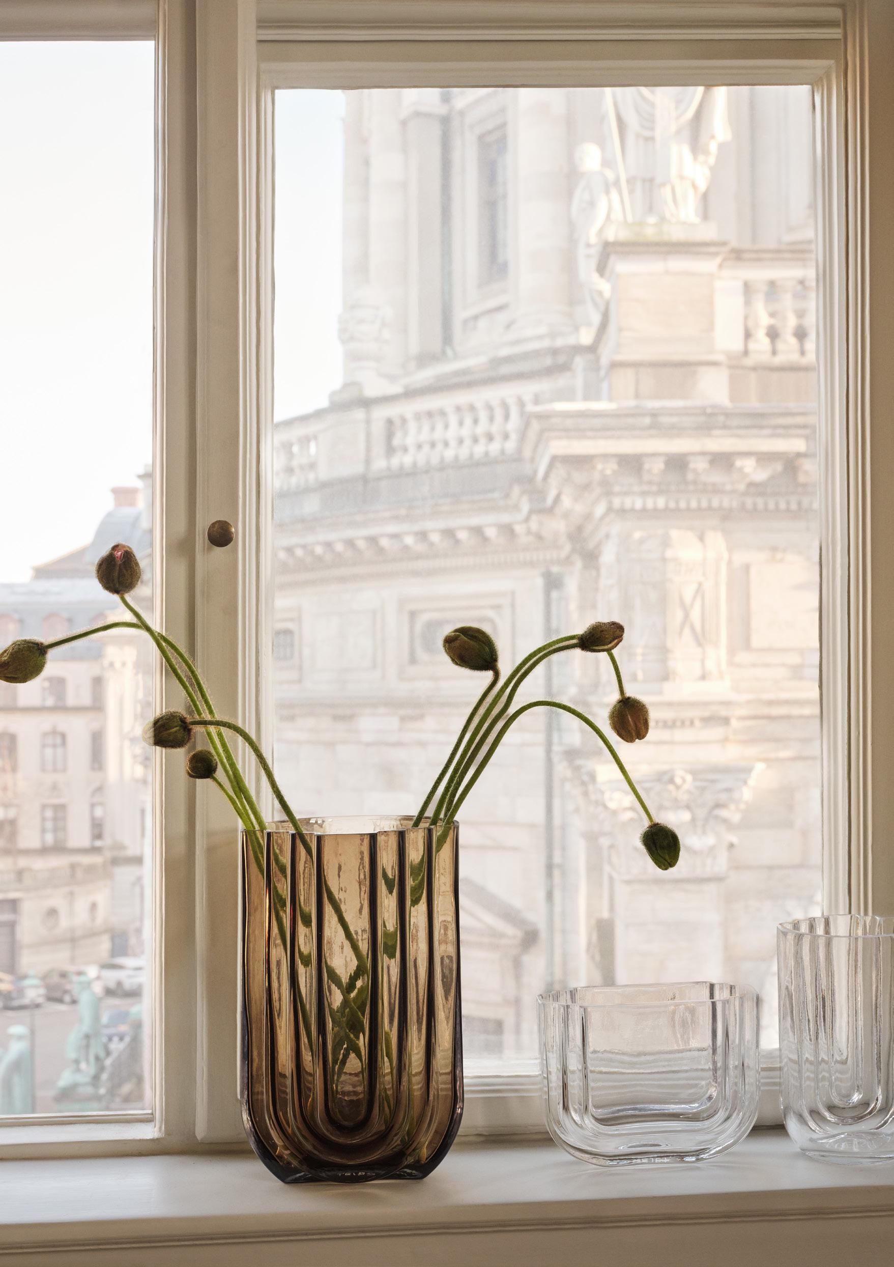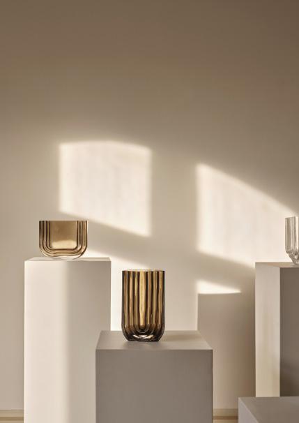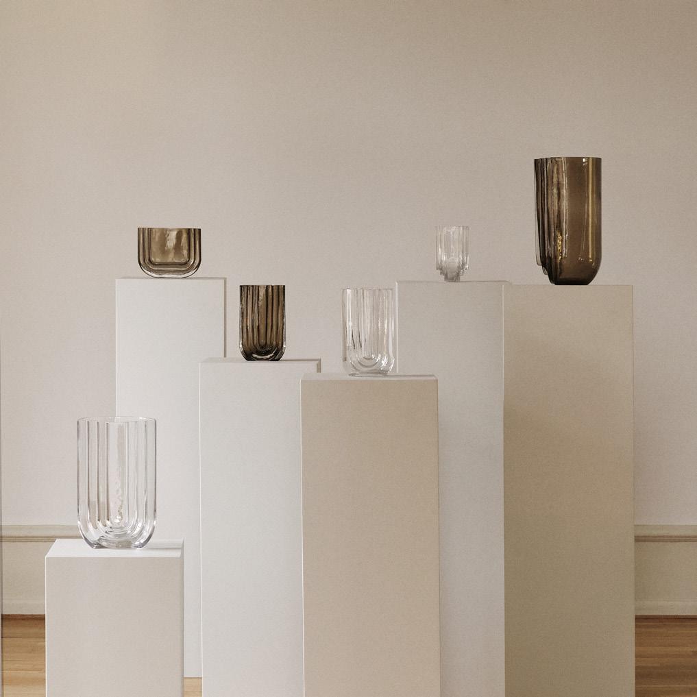 VIMA is a sculptural glass collection defined by clean geometry and a strong architectural presence. Inspired by arches and passages, each vase features stepped forms and subtle variations in glass thickness that allow light to pass through, creating depth, reflections and soft shadows. Both functional and contemplative, VIMA is designed for living spaces, home offices and bright interiors, where natural light brings the glass to life. Crafted in solid glass, the collection is available in clear and smoked glass and comes in three sizes: oval, medium and large. A timeless design with a monolithic yet refined expression – made to be cherished for years.
