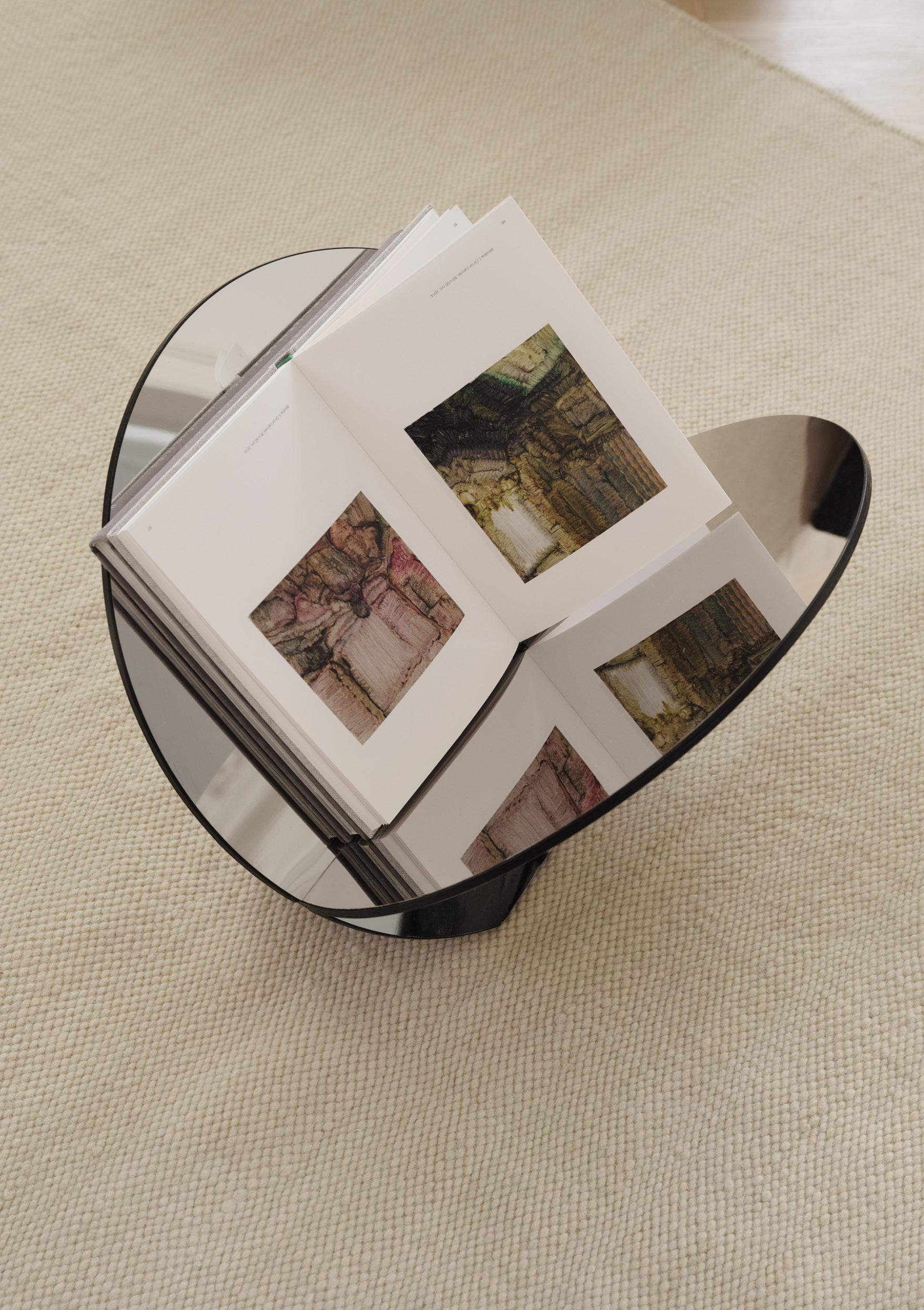 Silia was born out of the idea of creating a super simple magazine rack that stands by itself and can add an aesthetic touch to any room. It consists of two identical discs that are beveled at the bottom and have a carefully placed transverse slot half the diameter of the disc. By rotating one disc and sliding the two discs together at a right angle, Silia emerges in all its simplicity and functionality.