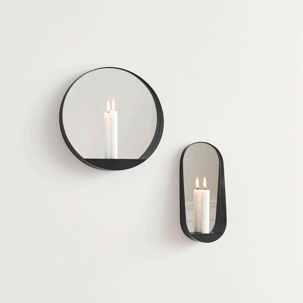 Glim is a wall hanged candle mirror designed by Böttcher Kayser for Gejst. The mirror amplifies the light and is a function inspired by old lanterns. Glim is a decorative and contemporary candle holder to fix at the wall. Made of painted steel and mirror glass, crooked cut from the side so the candle is free to burn. It captures the Danish atmosphere of “hygge” perfectly while giving a cozy effect mirroring the candlelight. Perfect to implement in a picture wall, to install alone or in a cluster in the Livingroom, entrance, office or bedroom.